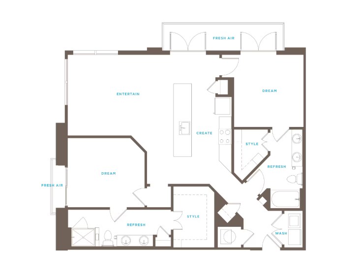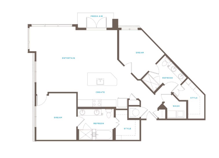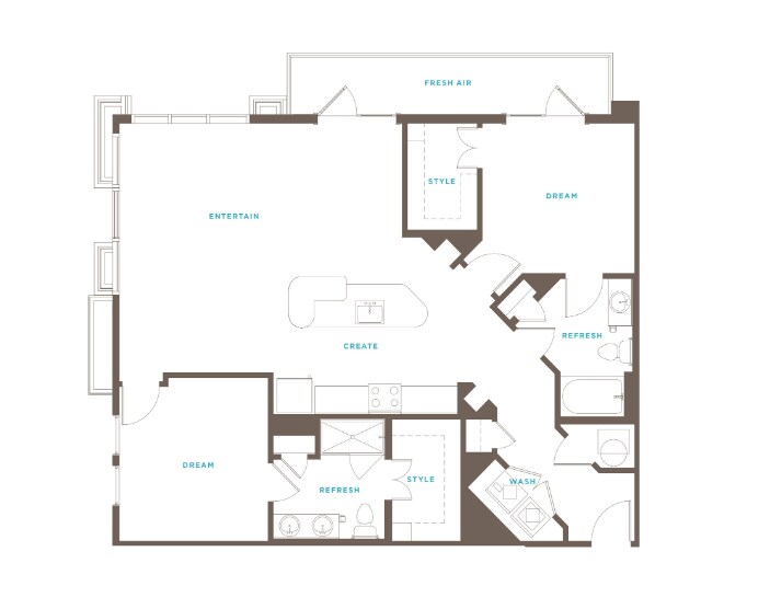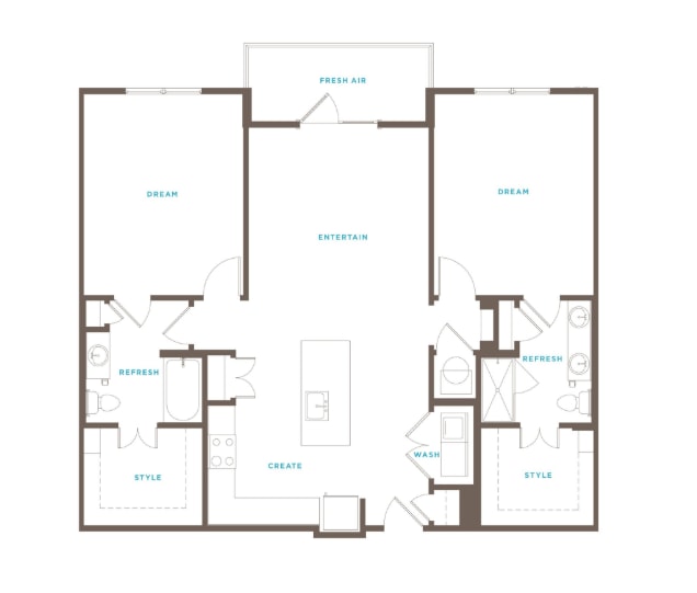 Modelo de apartamento: A2Desde $2,0481 Dormitorio, 1 Baño, 769 sq ftDisponible Ahora![]()