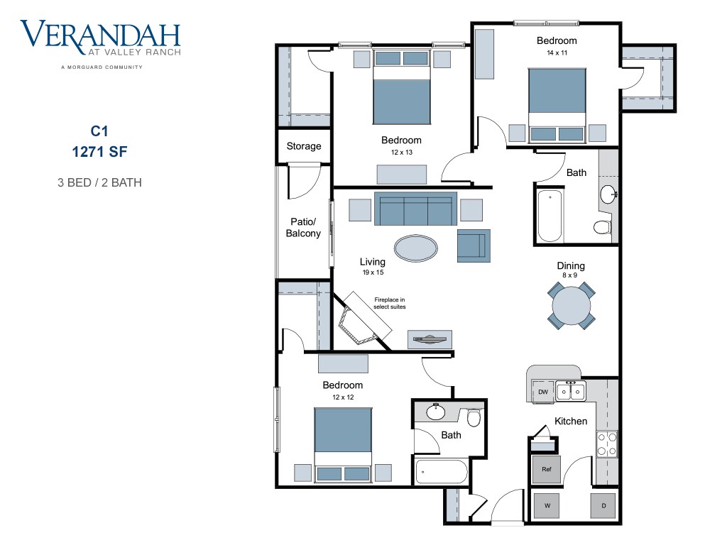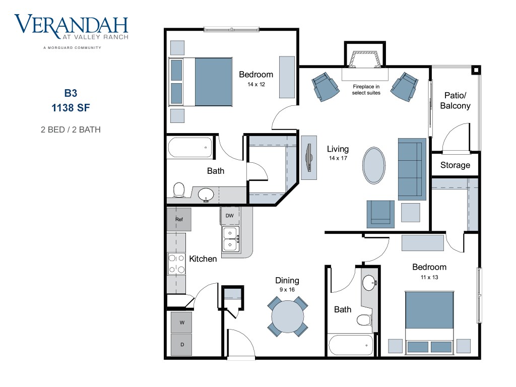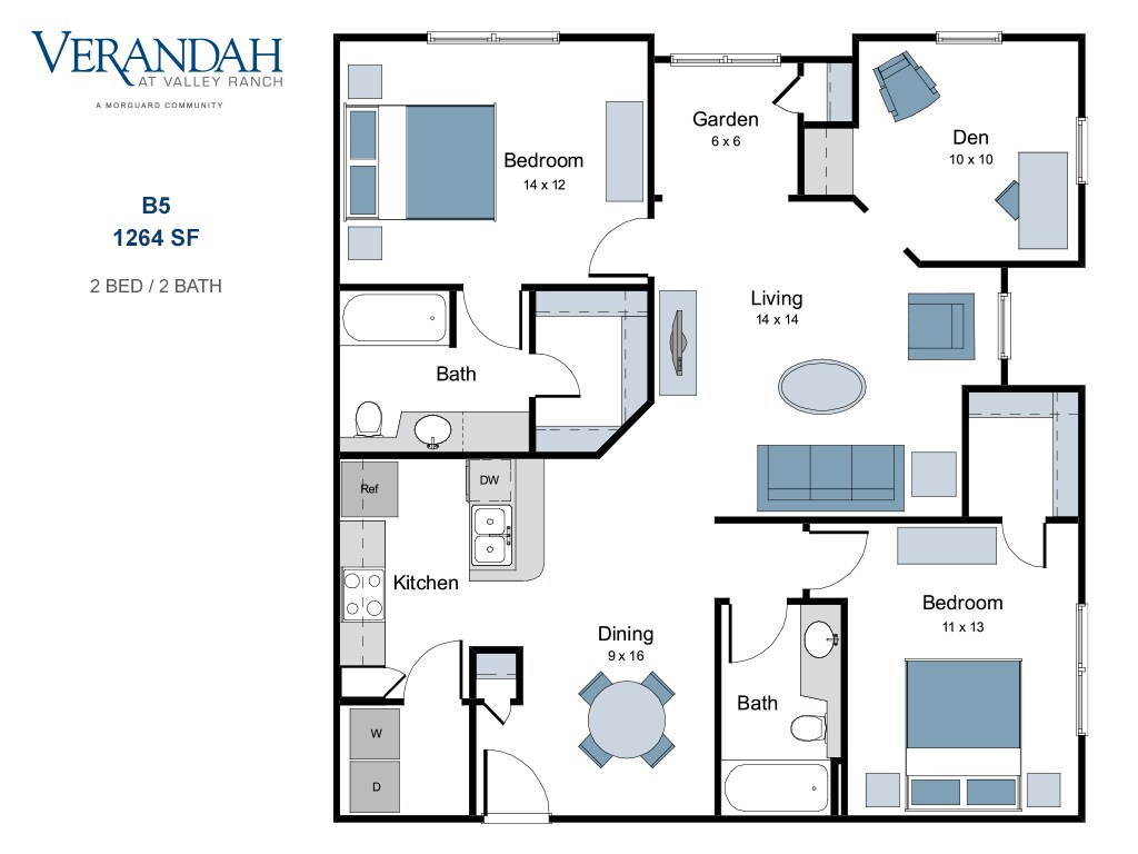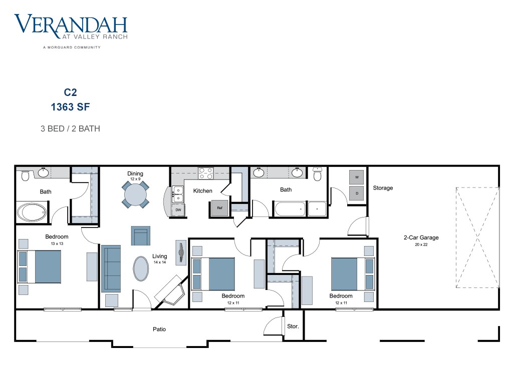 Verandah at Valley Ranch ofrece apartamentos de 1 a 3 Dormitorios desde $1,299 con 743–1,363 pies cuadrados. Aquí está el precio actual y la disponibilidad: