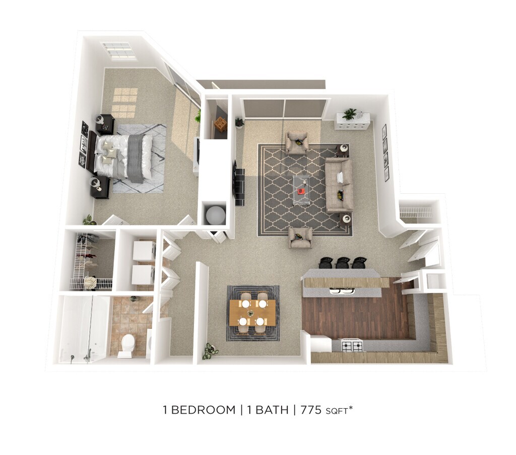 1 Dormitorio, 1 Baño, 775 pies²Disponible AhoraGalería del Modelo