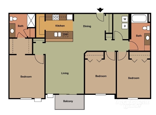 Modelo de apartamento: Three-Bedroom3 Dormitorios, 2 Baños, 1314-1404 sq ftNo Disponible![]()