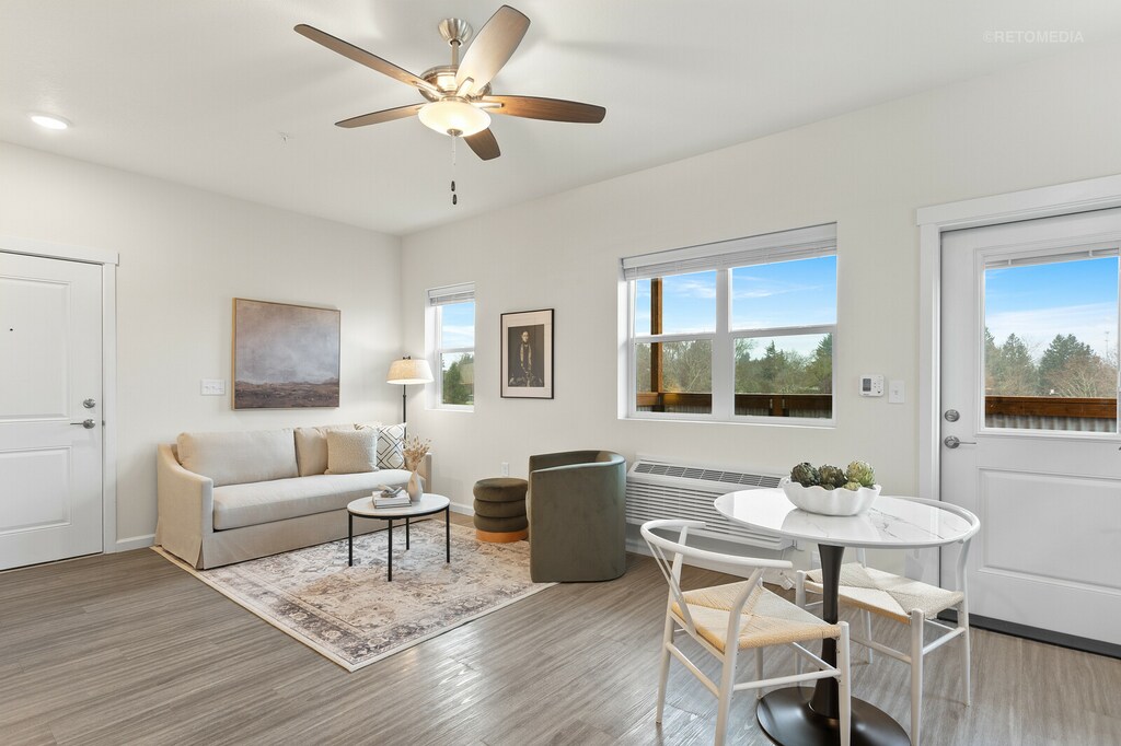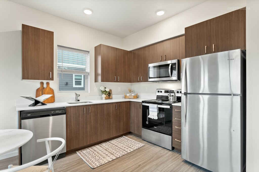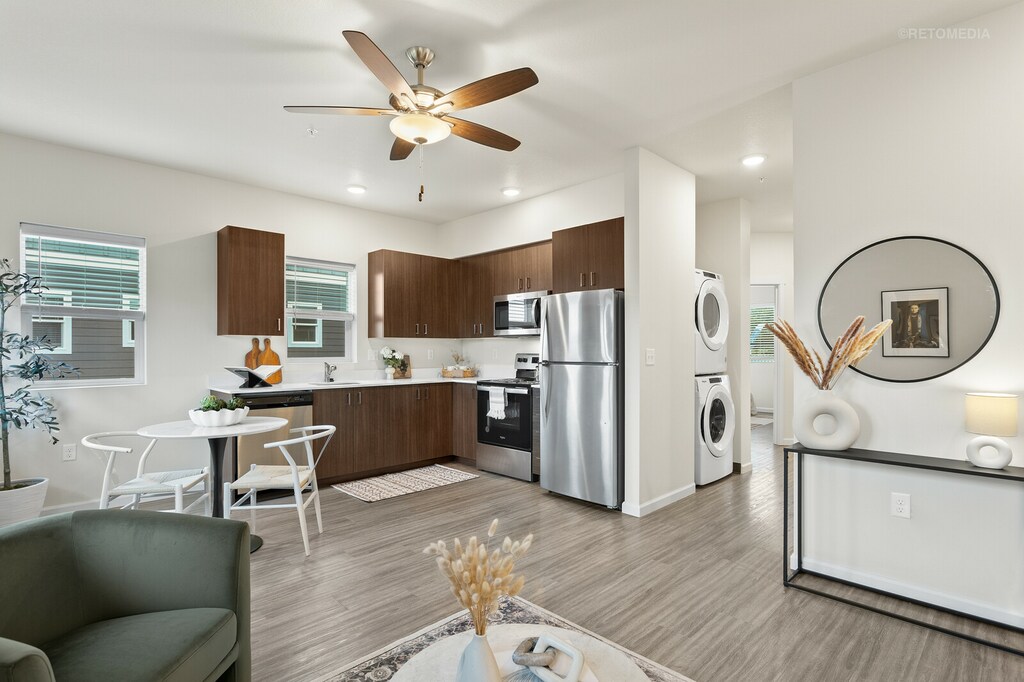Verda Crossing offers new one-, two-, and three-bedroom homes designed for modern living. Each apartment features wood-style flooring, stainless-steel energy-efficient appliances, quartz countertops, air conditioning, and in-unit washers and dryers, with select units offering private balconies or patios. Residents enjoy amenities like a state-of-the-art fitness center, clubhouse with coffee bar, and rentable office space. Pet-friendly and located near Keizer Station shopping center, Verda Crossing provides easy access to dining, shopping, and entertainment for a comfortable, contemporary lifestyle.