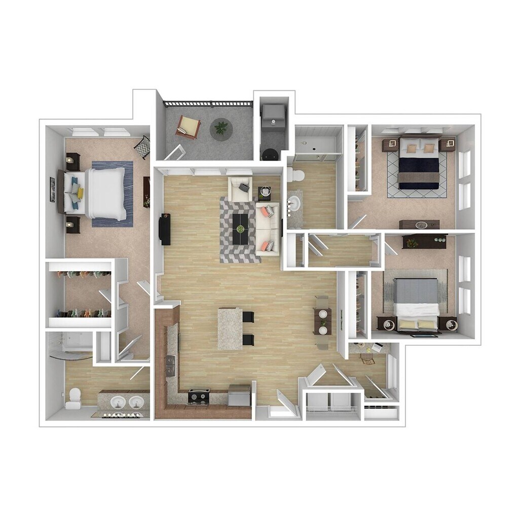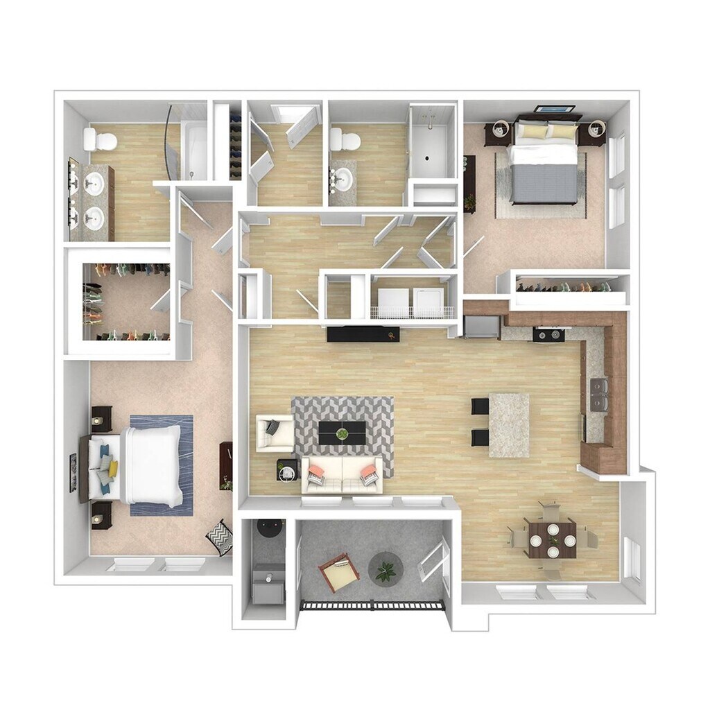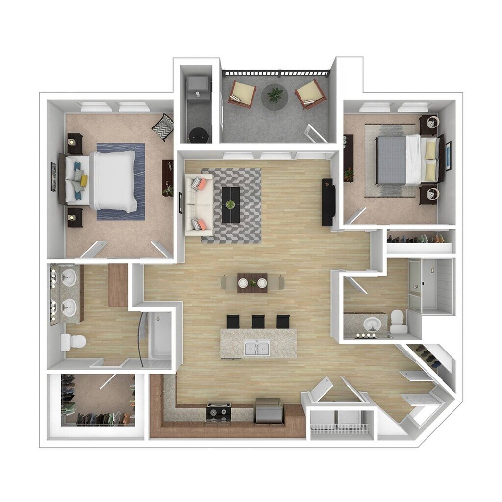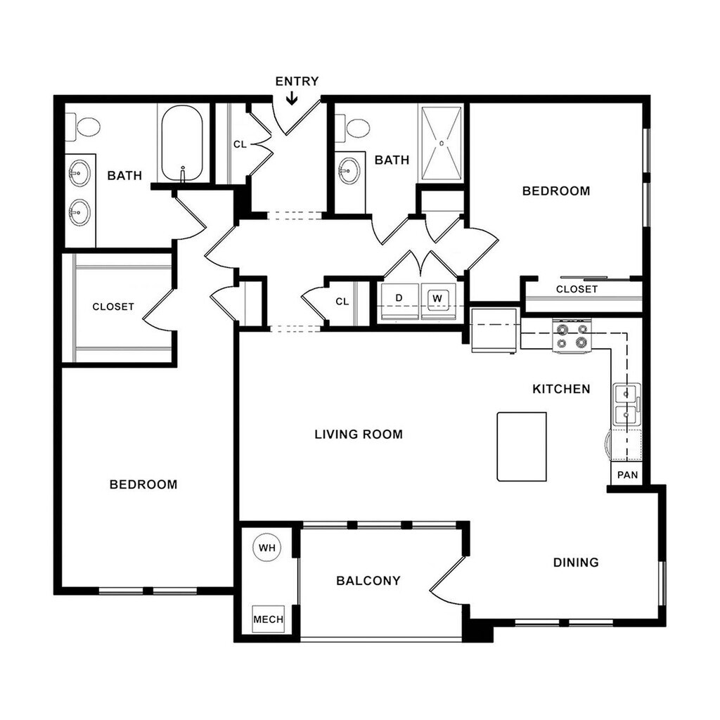 Modelo de apartamento: Madison (B1)2 Dormitorios, 2 Baños, 1076 sq ftDisponible Ahora![]()