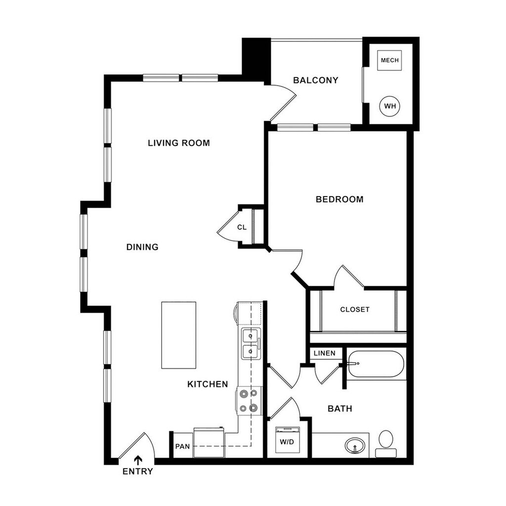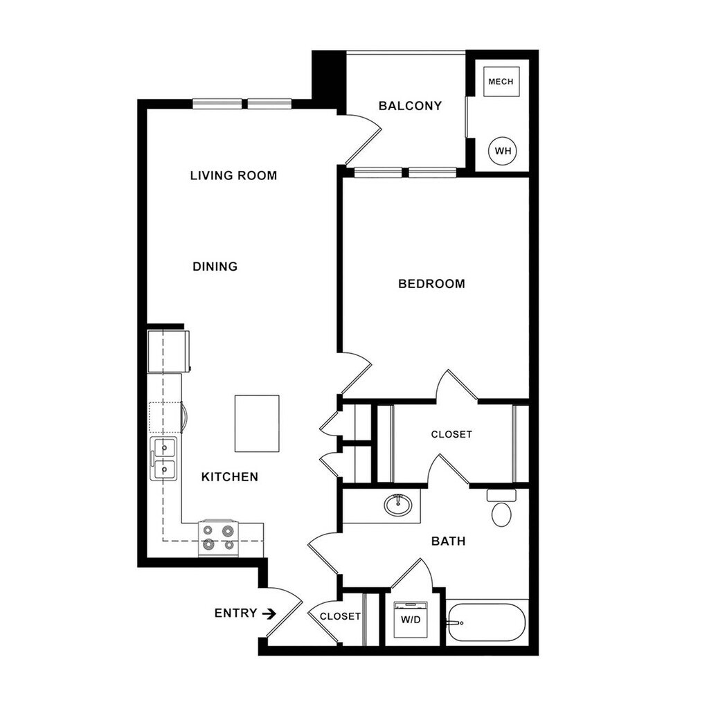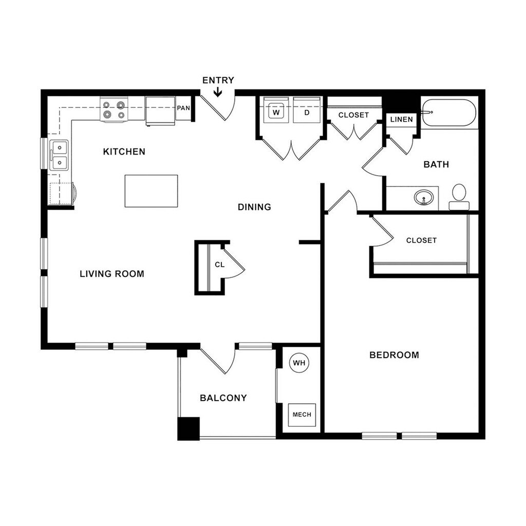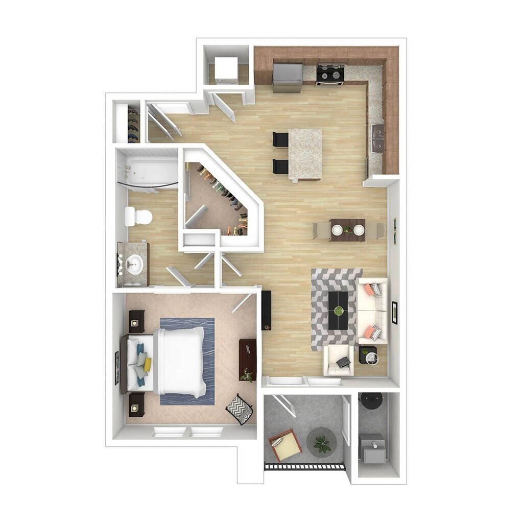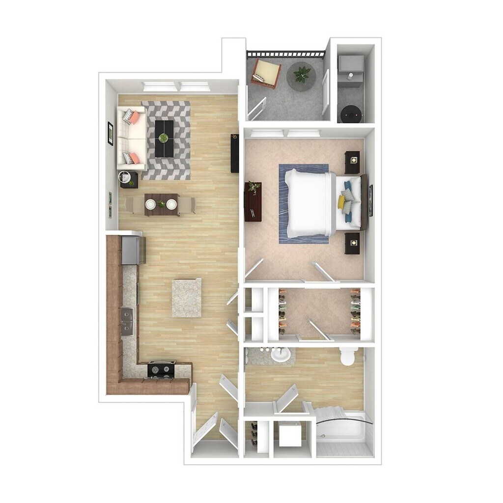 1 Dormitorio, 1 Baño, 743 pies²Disponible AhoraGalería del Modelo