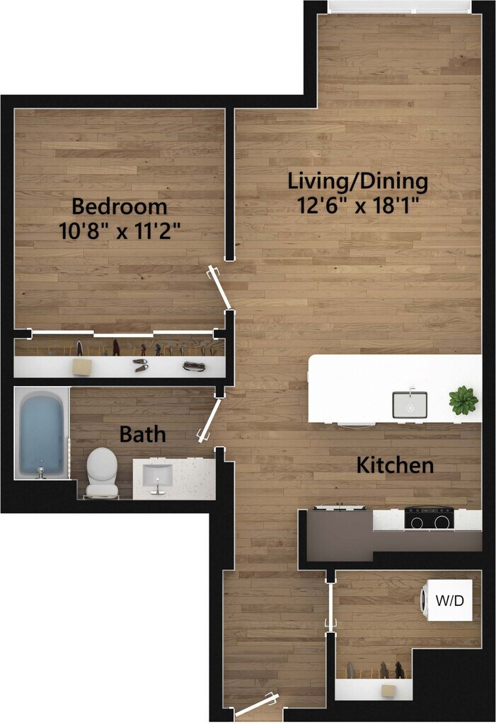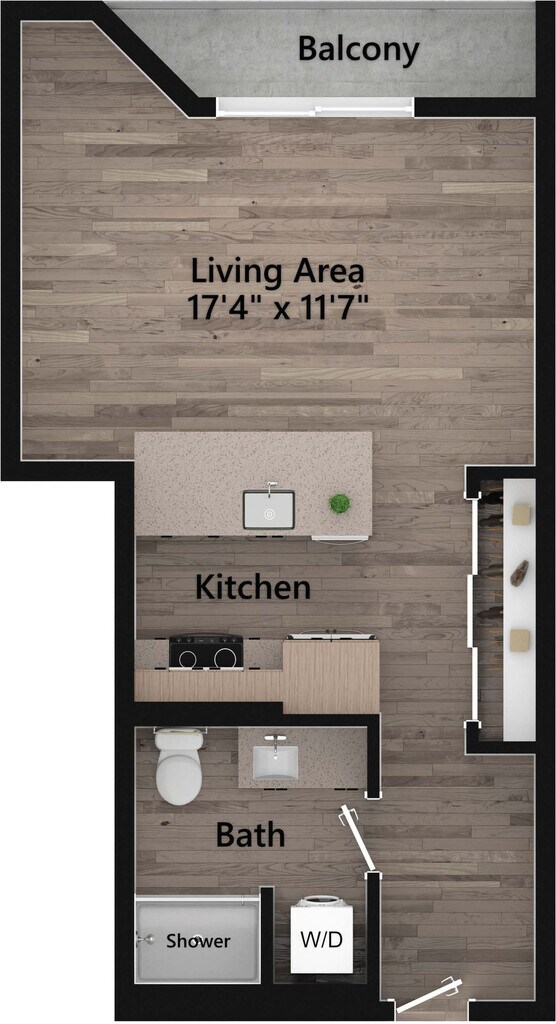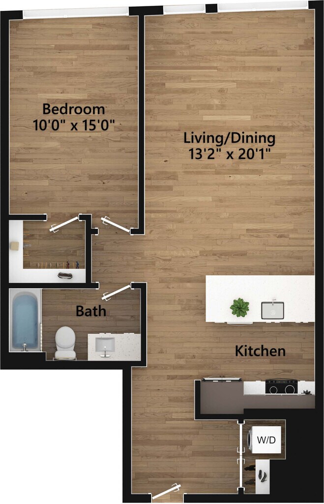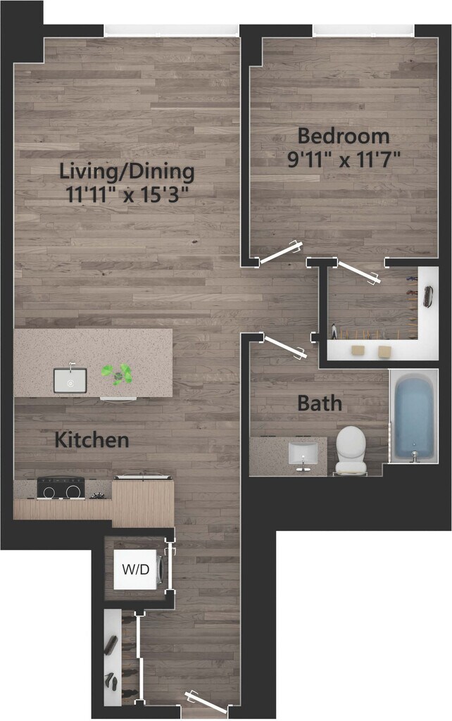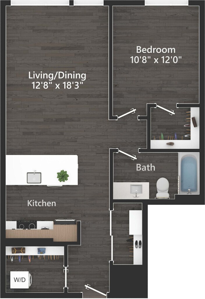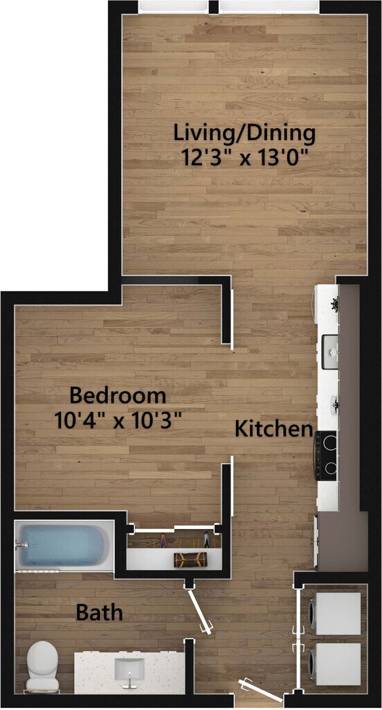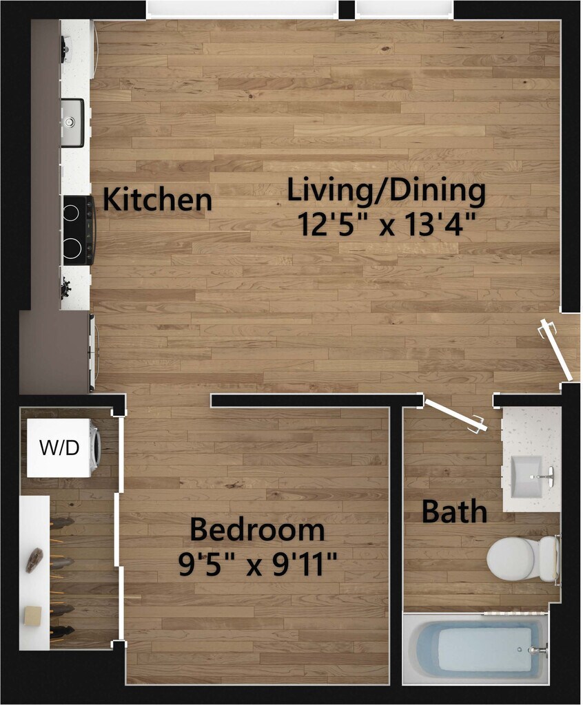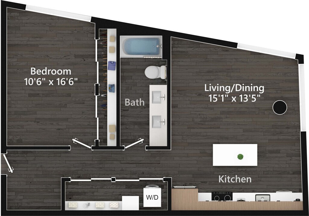 Estudio, 1 Baño, 585 pies²Disponible AhoraGalería del Modelo