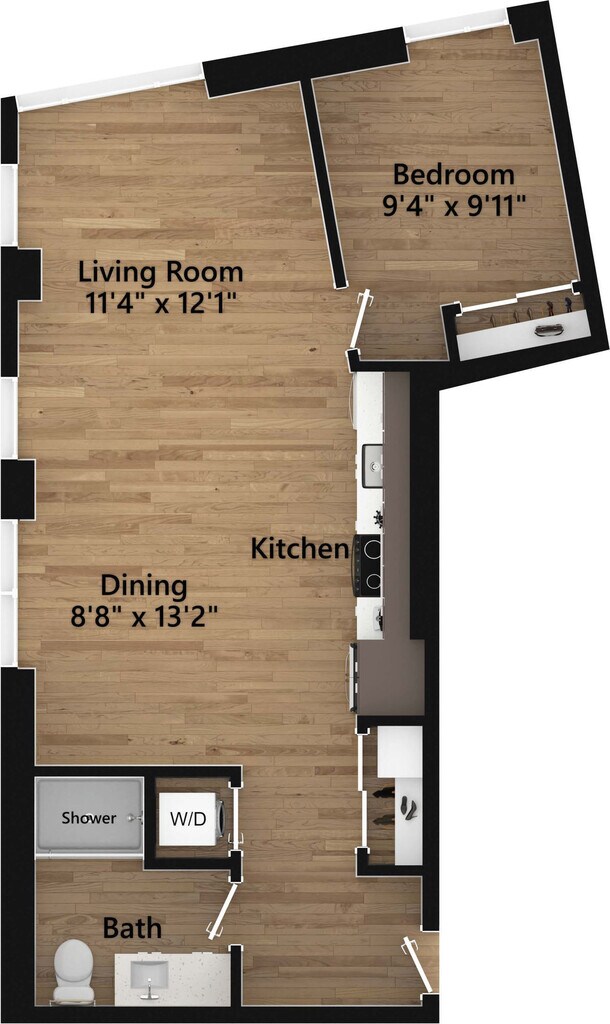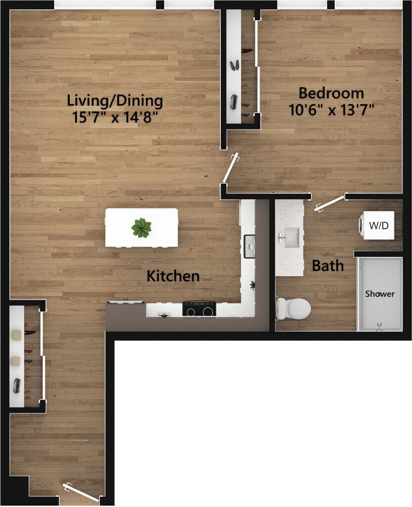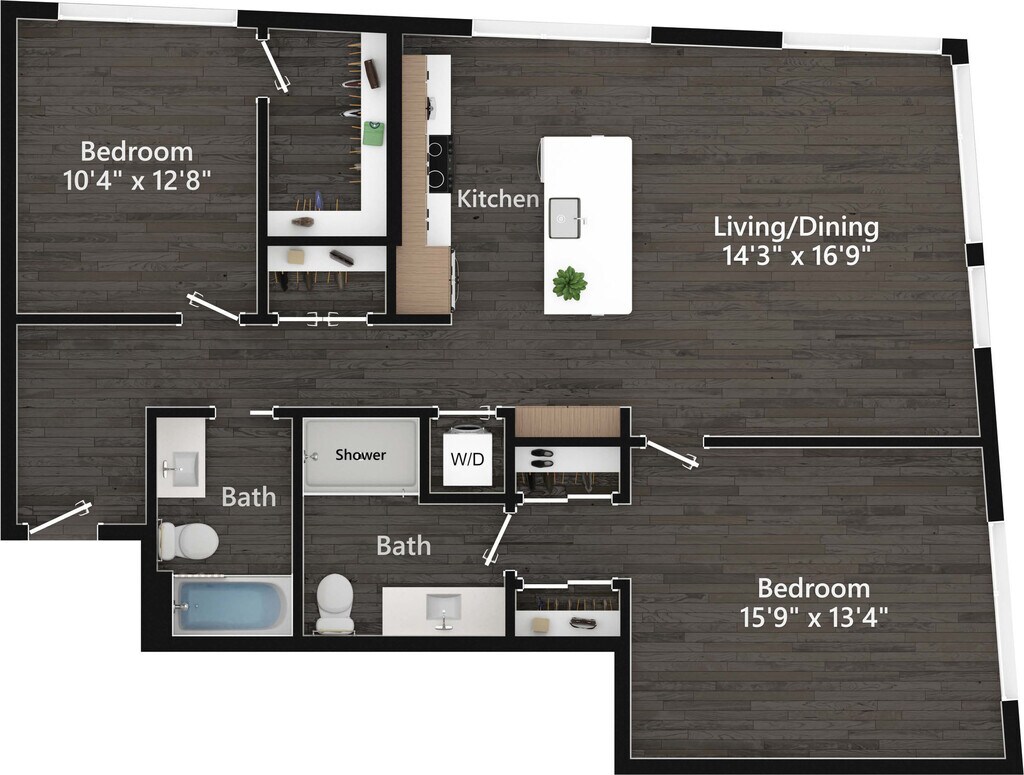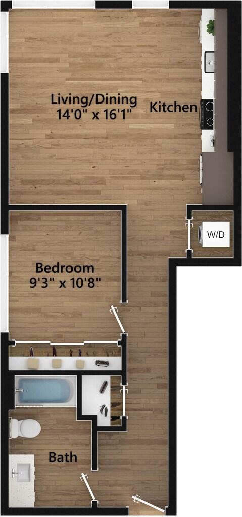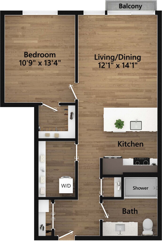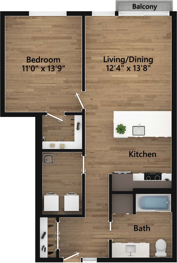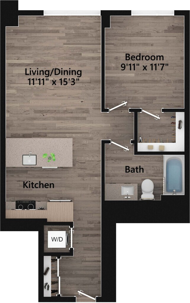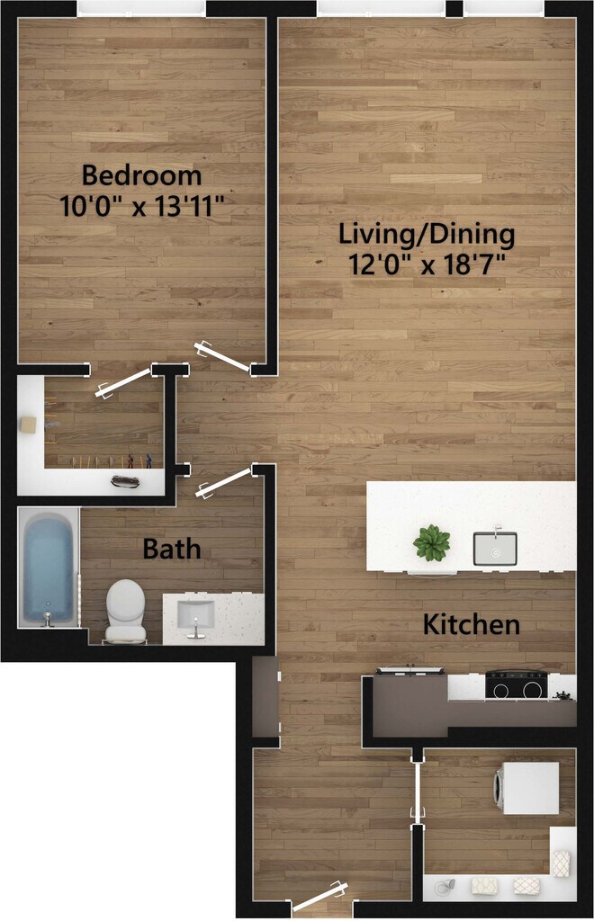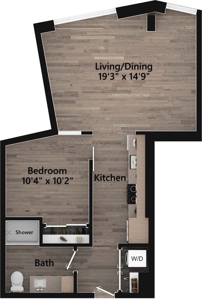 Estudio, 1 Baño, 585 pies²Disponible AhoraGalería del Modelo
