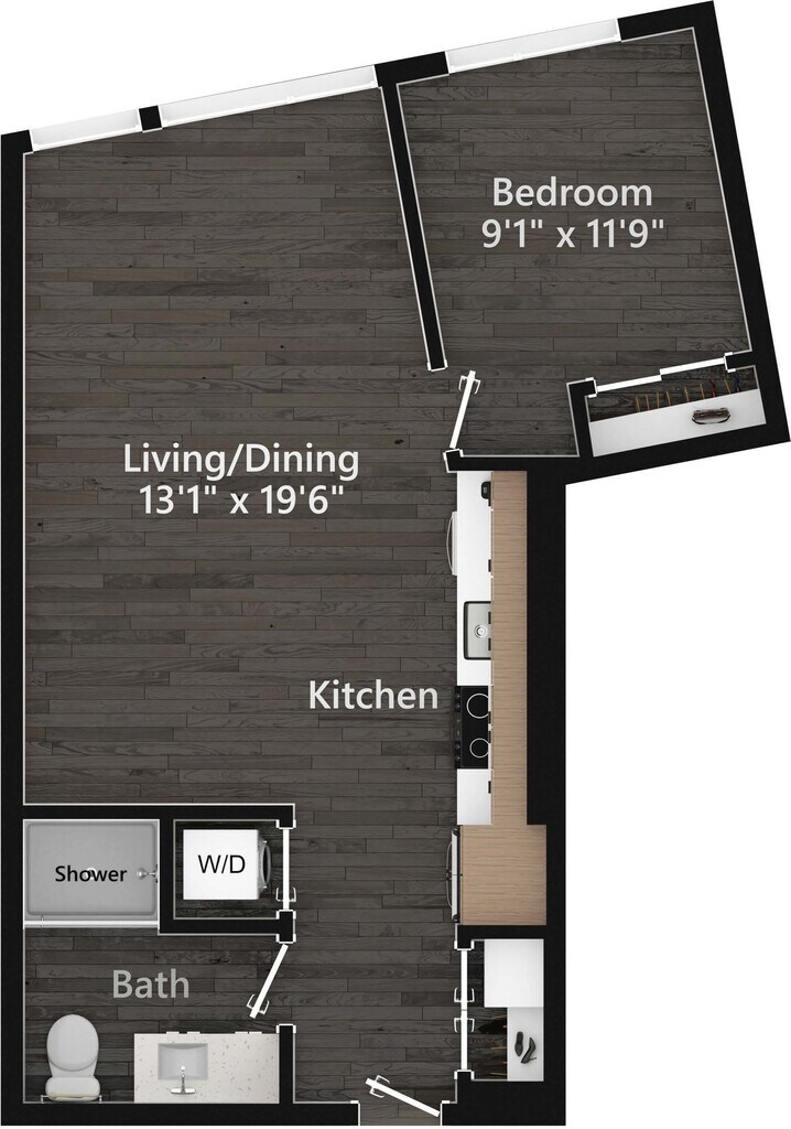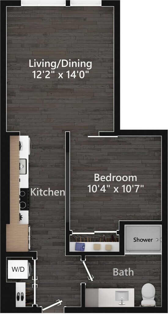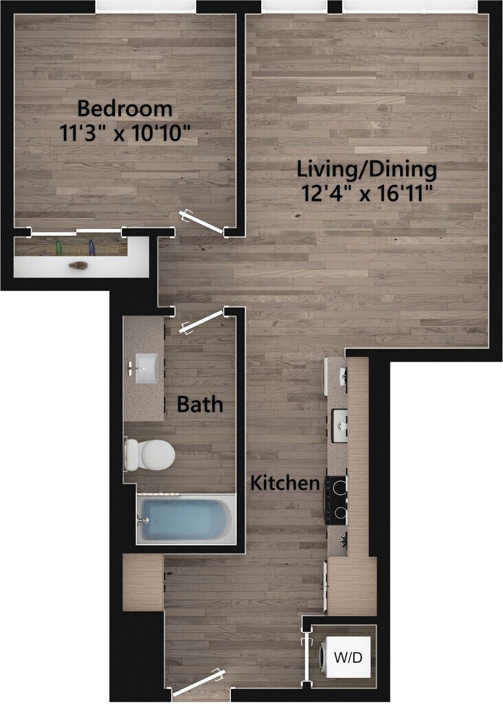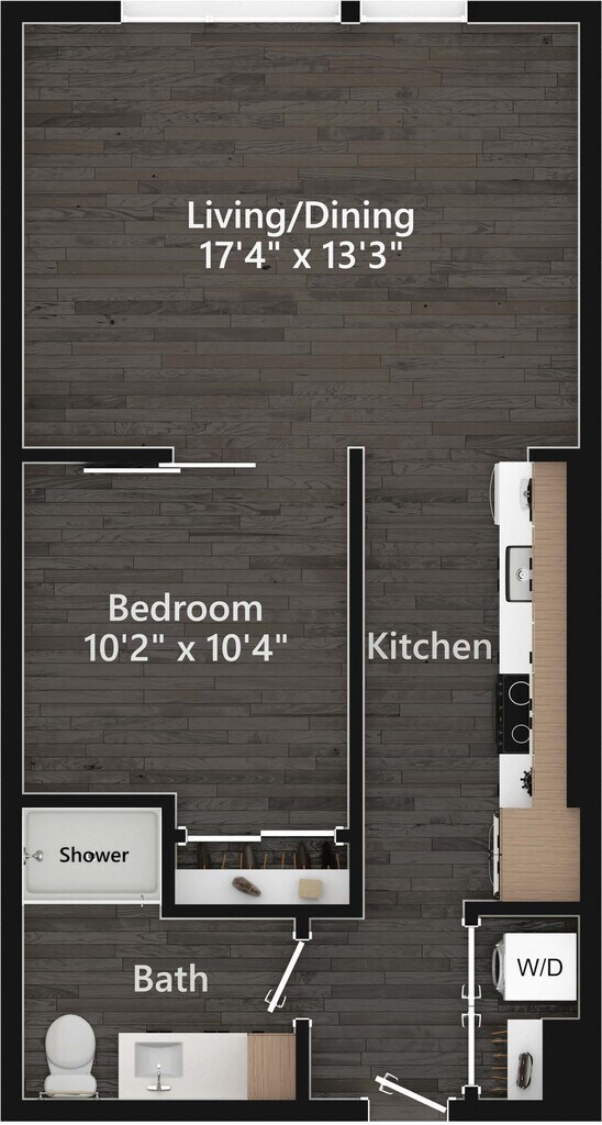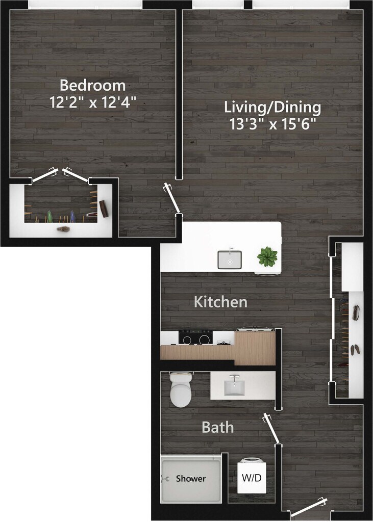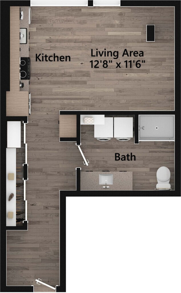 Estudio, 1 Baño, 536 pies²Disponible AhoraGalería del Modelo