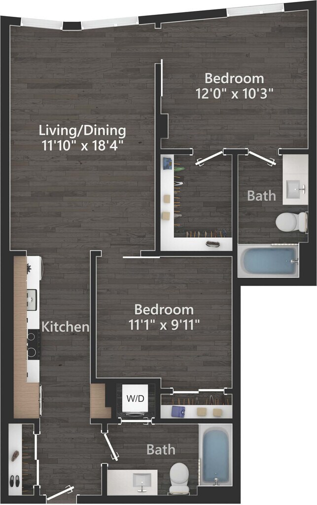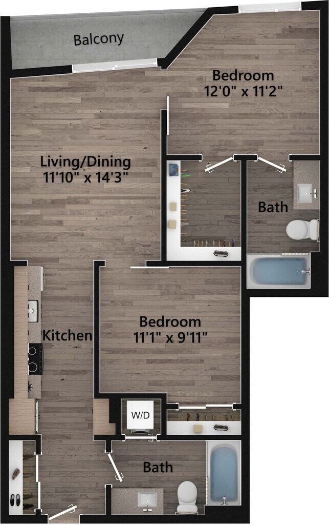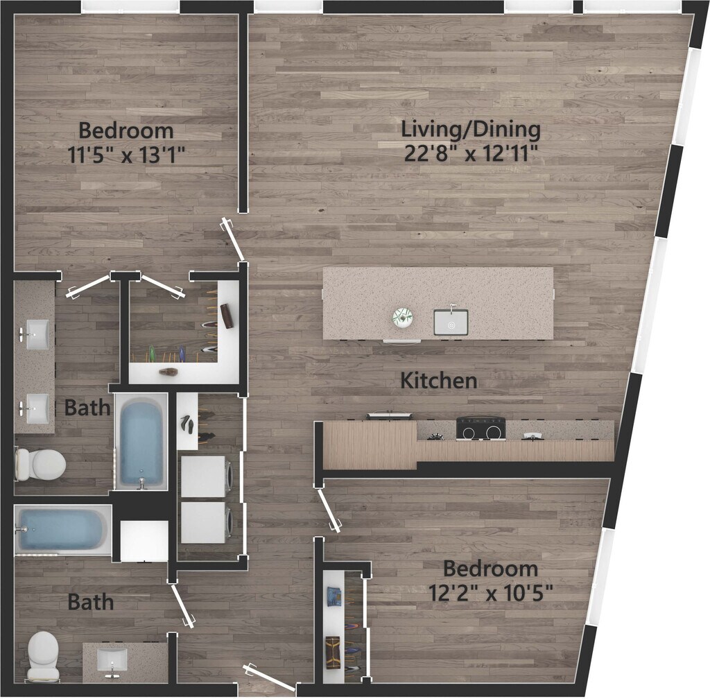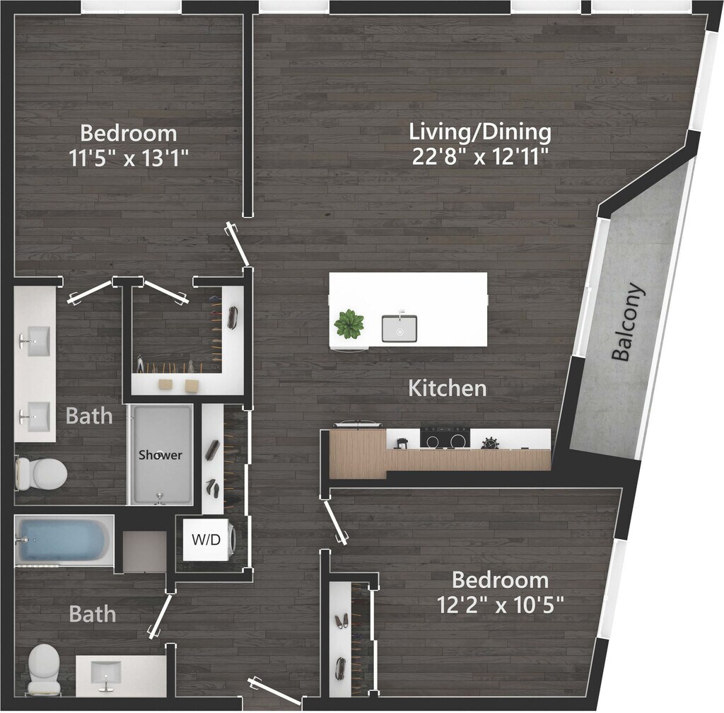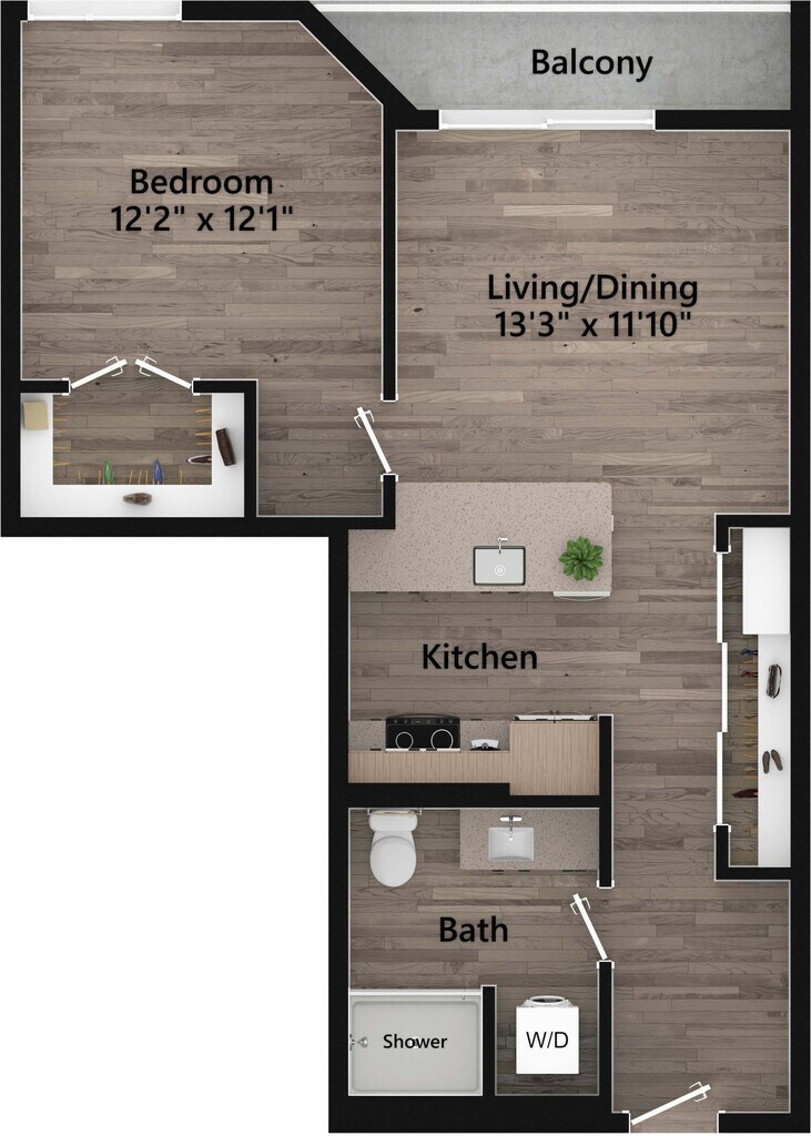 Estudio, 1 Baño, 536 pies²Disponible AhoraGalería del Modelo