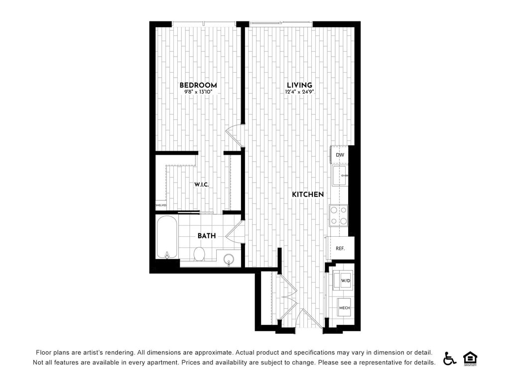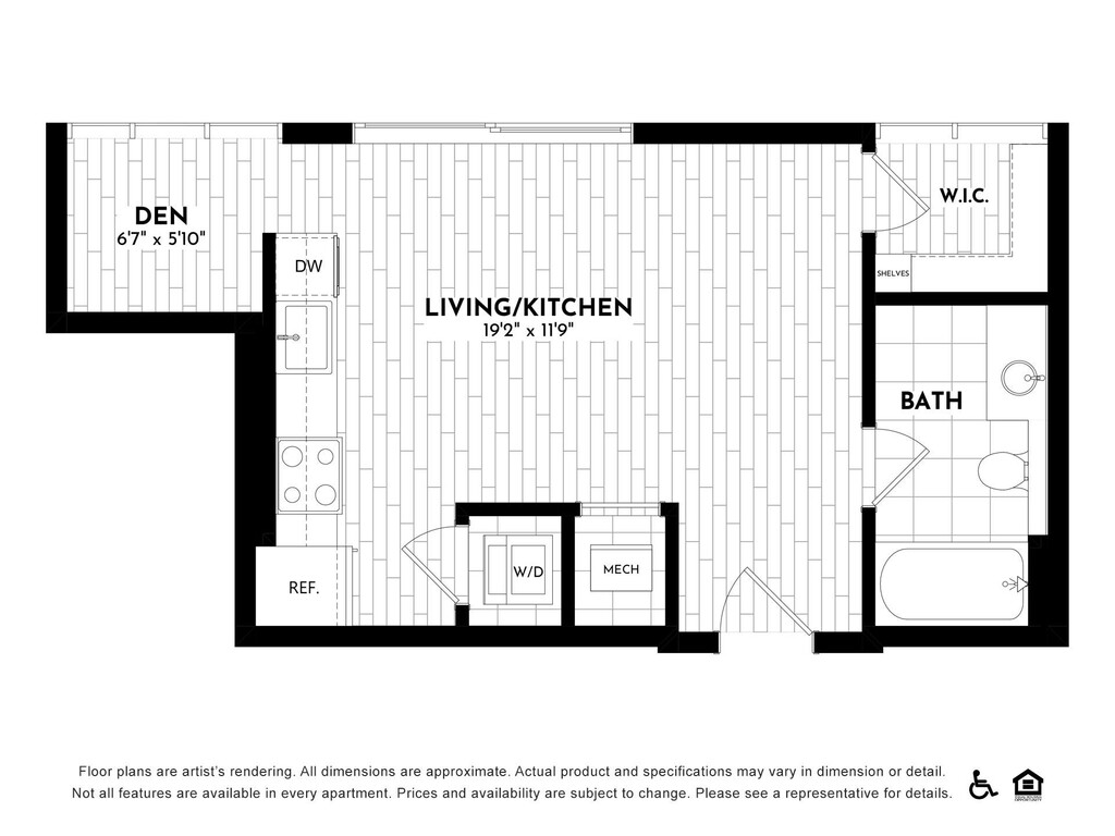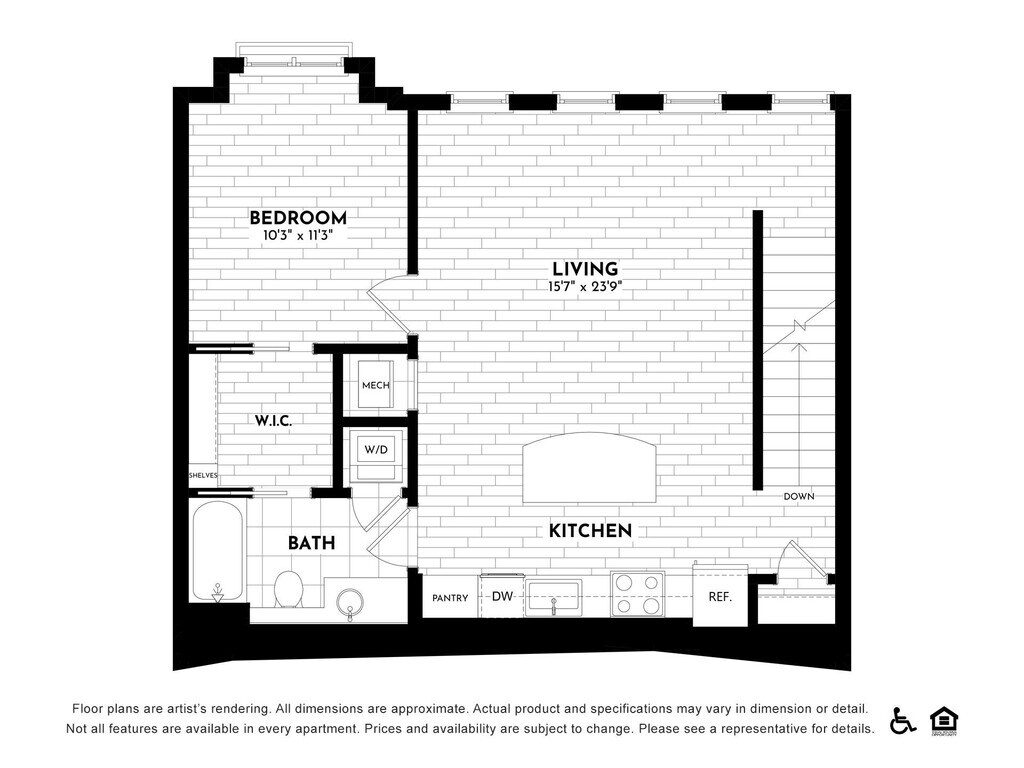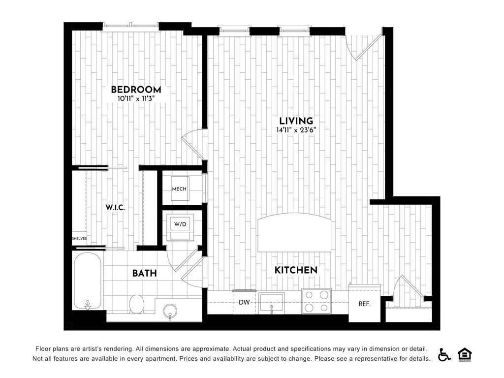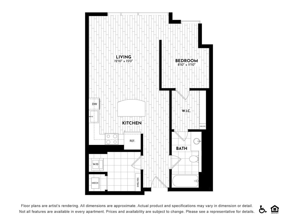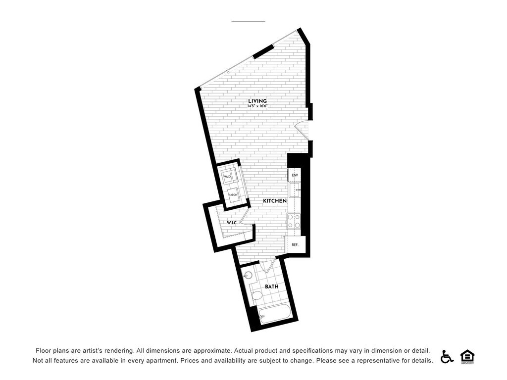 Modelo de apartamento: MossLlame para PreciosEstudio, 1 Baño, 653 sq ftNo Disponible- Los planos de la planta son una interpretación artística. Todas las dimensiones son aproximadas. Los tamaños o el detalle del producto real y sus especificaciones pueden variar. No todas las características están disponibles en todos los hogares para rentar. Los precios y la disponibilidad están sujetos a cambios. El alquiler que se muestra es mensual. Se pueden aplicar ciertos cargos, por ejemplo, entrega de paquetes, recolección de basura, agua, servicios, etc. Depositos varian. Consulta a un representante para conocer detalles. ![]() - Moss - Plano 1