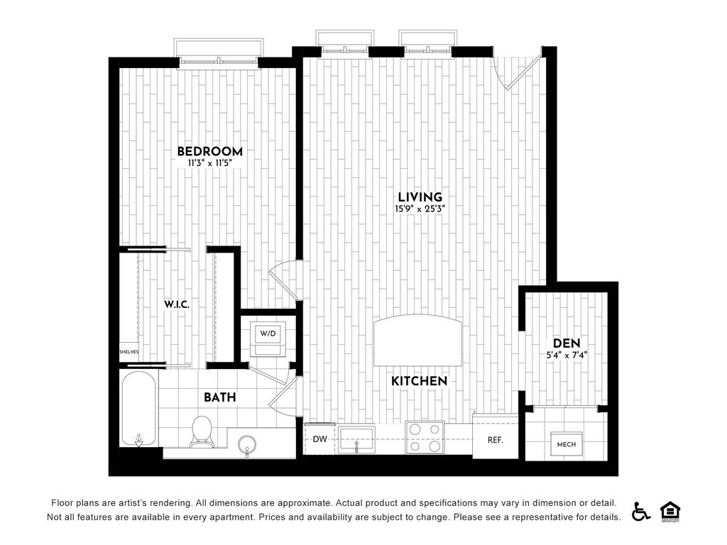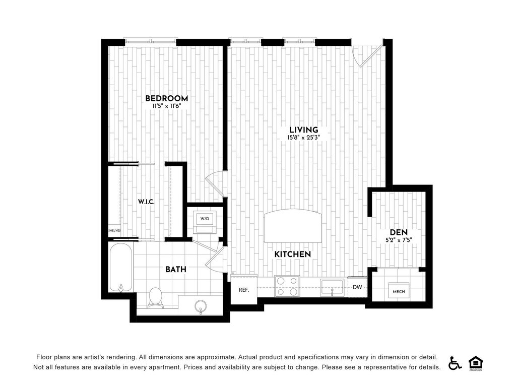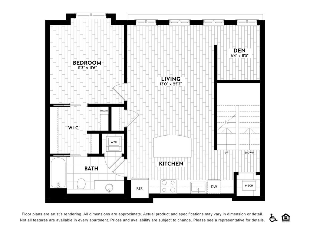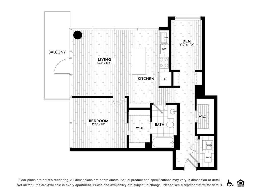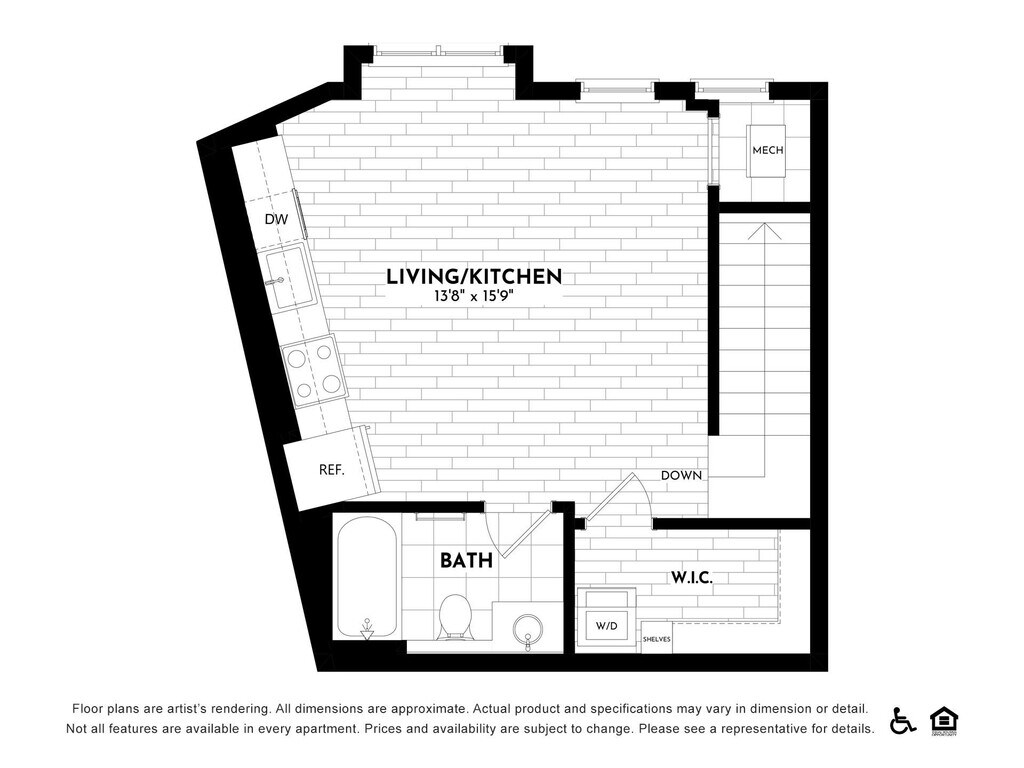 Modelo de apartamento: MossLlame para PreciosEstudio, 1 Baño, 653 sq ftNo Disponible- Los planos de la planta son una interpretación artística. Todas las dimensiones son aproximadas. Los tamaños o el detalle del producto real y sus especificaciones pueden variar. No todas las características están disponibles en todos los hogares para rentar. Los precios y la disponibilidad están sujetos a cambios. El alquiler que se muestra es mensual. Se pueden aplicar ciertos cargos, por ejemplo, entrega de paquetes, recolección de basura, agua, servicios, etc. Depositos varian. Consulta a un representante para conocer detalles. ![]() - Moss - Plano 1