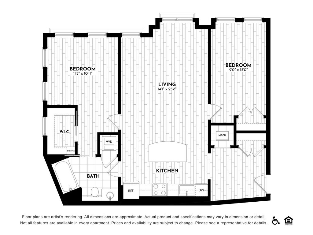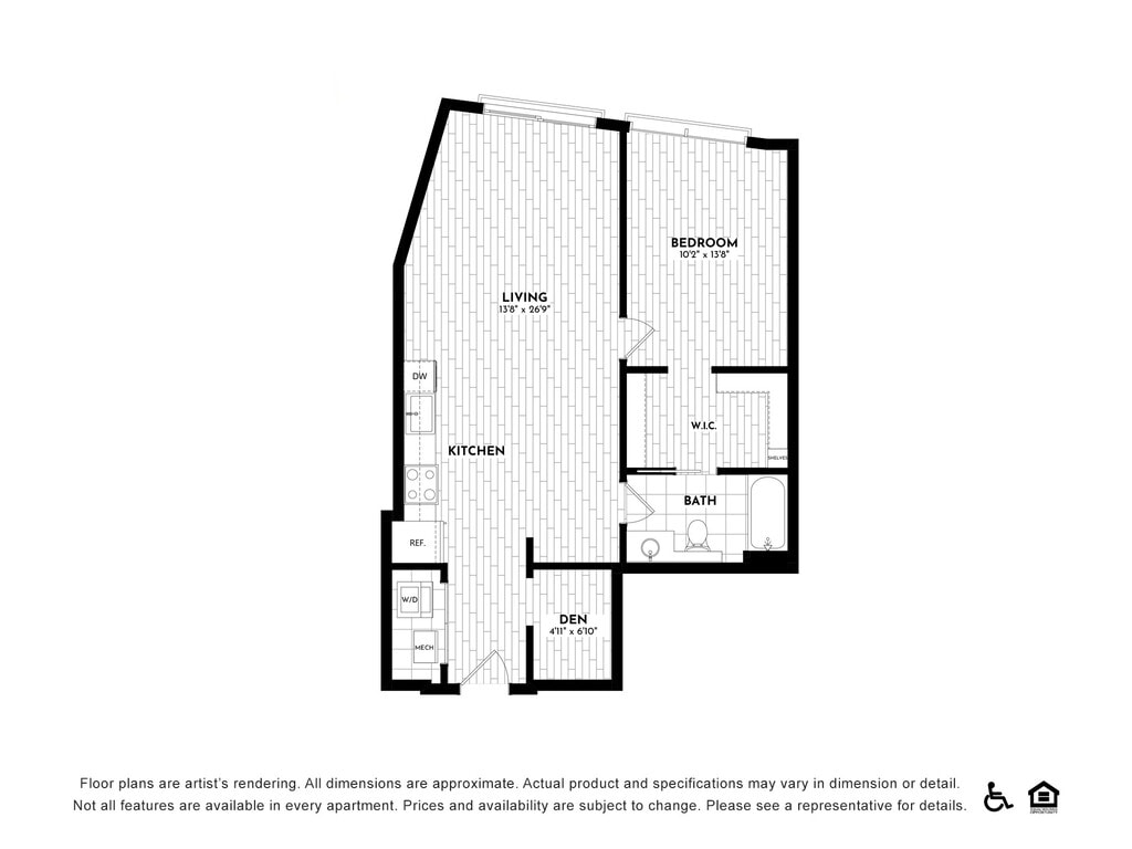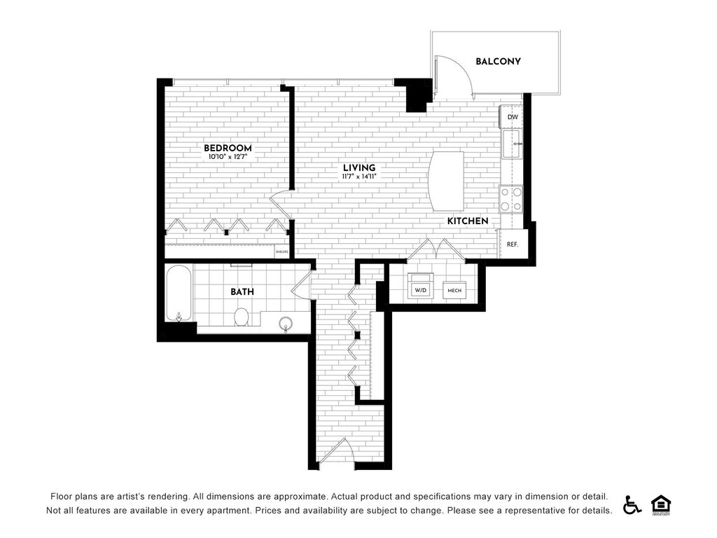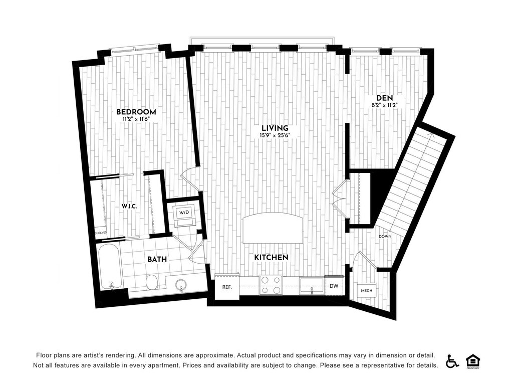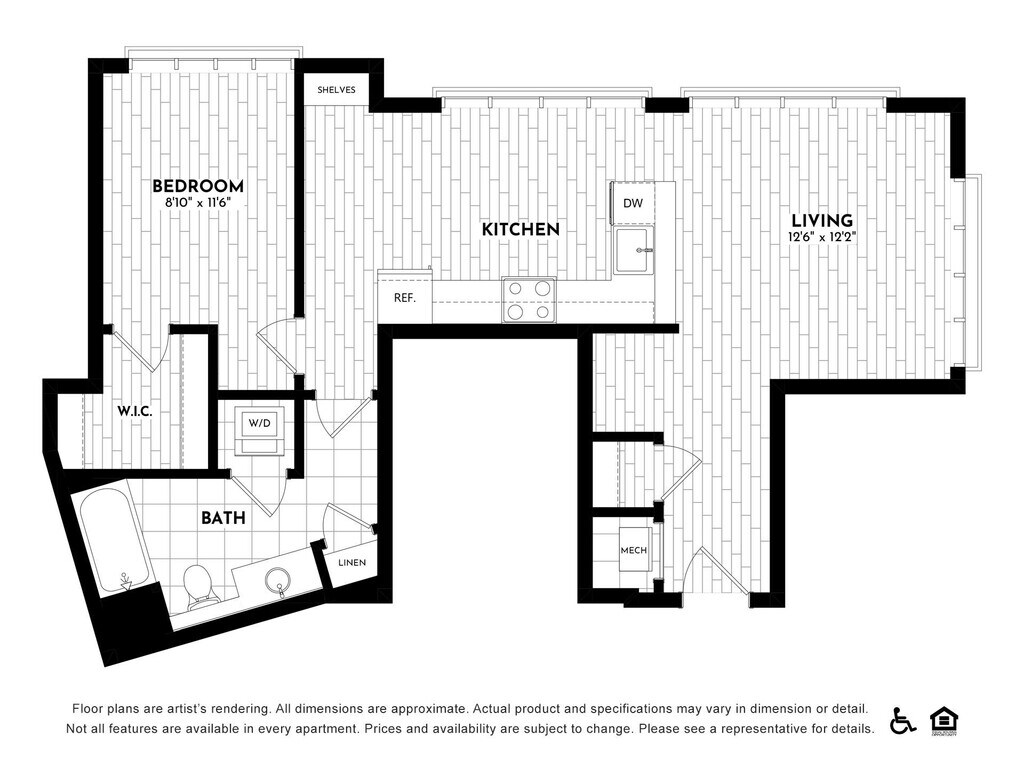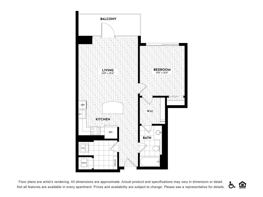 Modelo de apartamento: MossLlame para PreciosEstudio, 1 Baño, 653 sq ftNo Disponible- Los planos de la planta son una interpretación artística. Todas las dimensiones son aproximadas. Los tamaños o el detalle del producto real y sus especificaciones pueden variar. No todas las características están disponibles en todos los hogares para rentar. Los precios y la disponibilidad están sujetos a cambios. El alquiler que se muestra es mensual. Se pueden aplicar ciertos cargos, por ejemplo, entrega de paquetes, recolección de basura, agua, servicios, etc. Depositos varian. Consulta a un representante para conocer detalles. ![]() - Moss - Plano 1