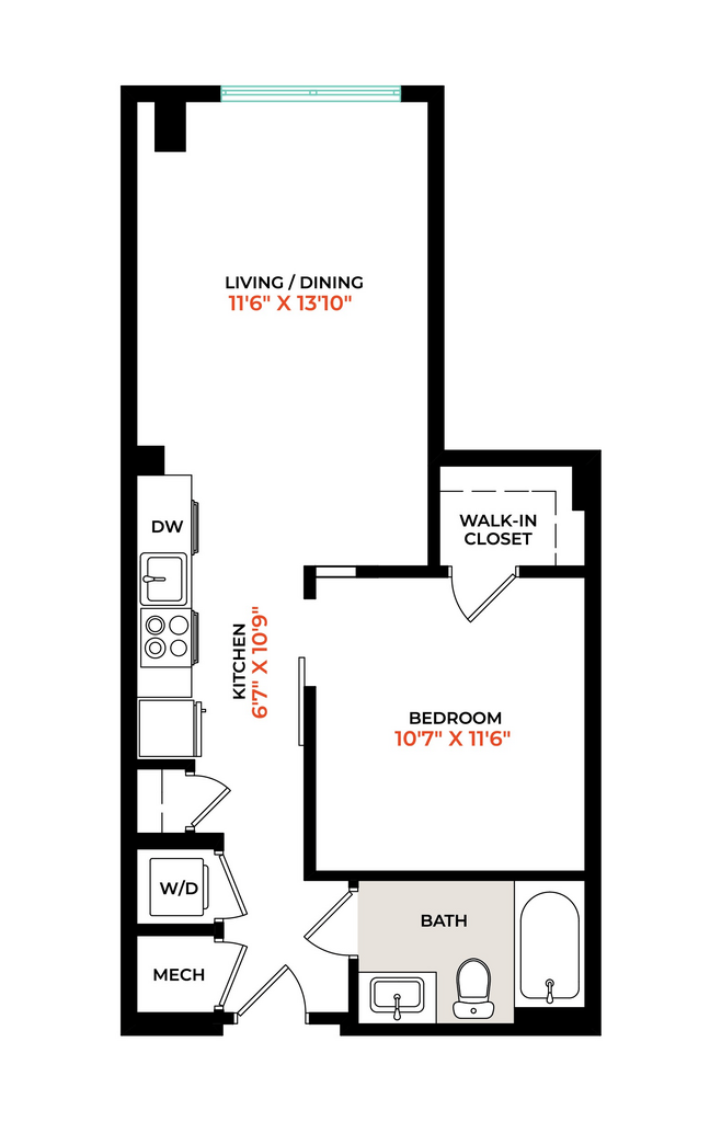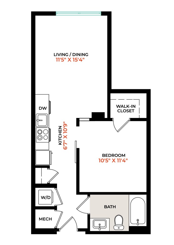 Modelo de apartamento: A1A1 Dormitorio, 1 Baño, 529 sq ftDisponible October 14, 2025A1A - Plano 1 Unidad de apartamento: 631Modelo de apartamento: A1A1 Dormitorio, 1 Baño, 529 sq ftDisponible October 14, 2025A12A