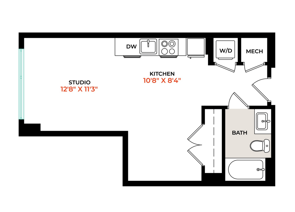 Estudio, 1 Baño, 480 pies²Disponible Oct 15Galería del Modelo