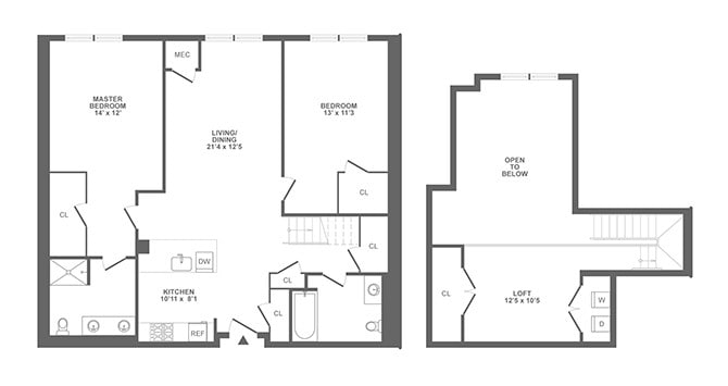 1 Dormitorio, 1 Baño, 836 pies²Disponible AhoraGalería del Modelo