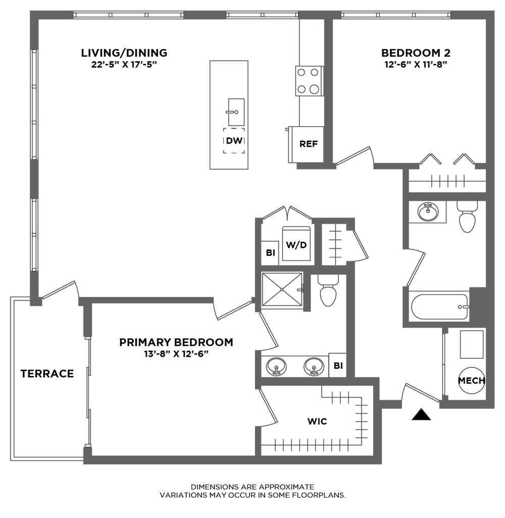 B12 - Plano Unidad de apartamento: 420Modelo de apartamento: B12$3,4732 Dormitorios, 2 Baños, 1318 sq ftDisponible AhoraPlano: B1