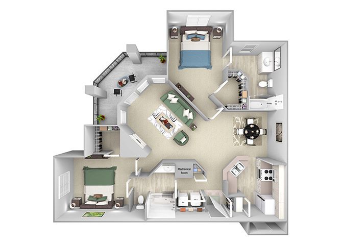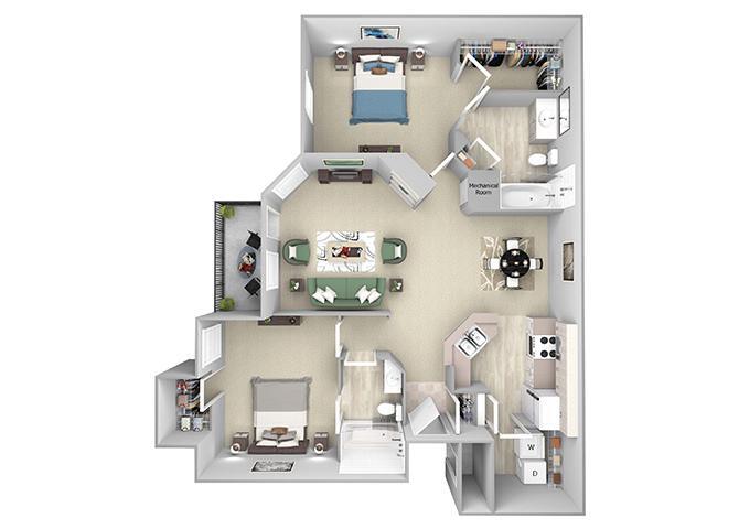 1 Dormitorio, 1 Baño, 843 pies²Disponible AhoraGalería del Modelo
