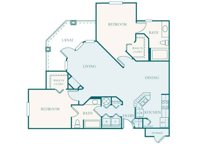 Modelo de apartamento: A2 (Amaryllis)Desde $1,3271 Dormitorio, 1 Baño, 843 sq ftDisponible Ahora![]()