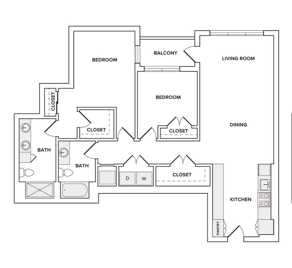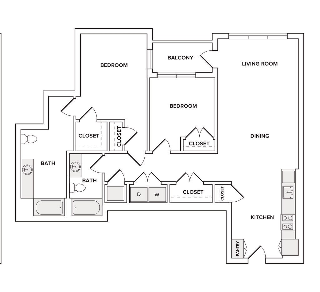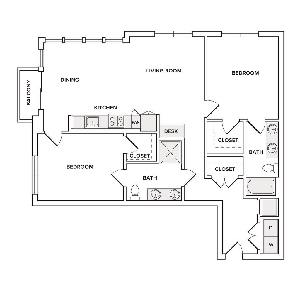 Modelo de apartamento: Ballad 22 Dormitorios, 2 Baños, 1137-1161 sq ftDisponible Ahora![]()