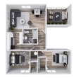 3 Dormitorios, 2 Baños, 1260 pies²Galería del Modelo