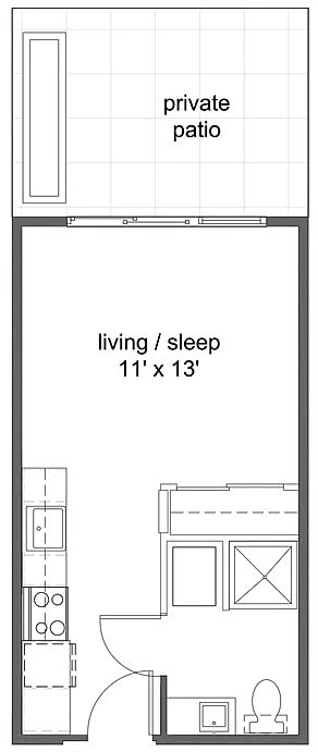 Unidad: 411 - Plano 1 Unidad de apartamento: 509Modelo de apartamento: Studios$1,675Estudio, 1 Baño, 450 sq ftDisponible Ahora![]()