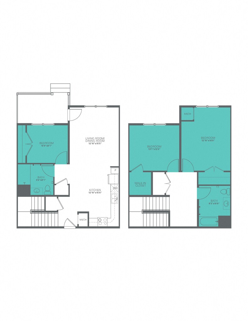 2 Dormitorios, 1 Baño, 1038 pies²Galería del Modelo