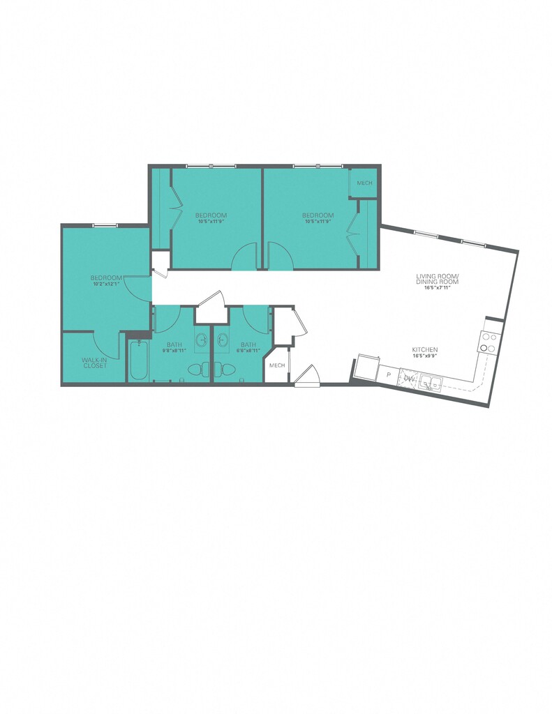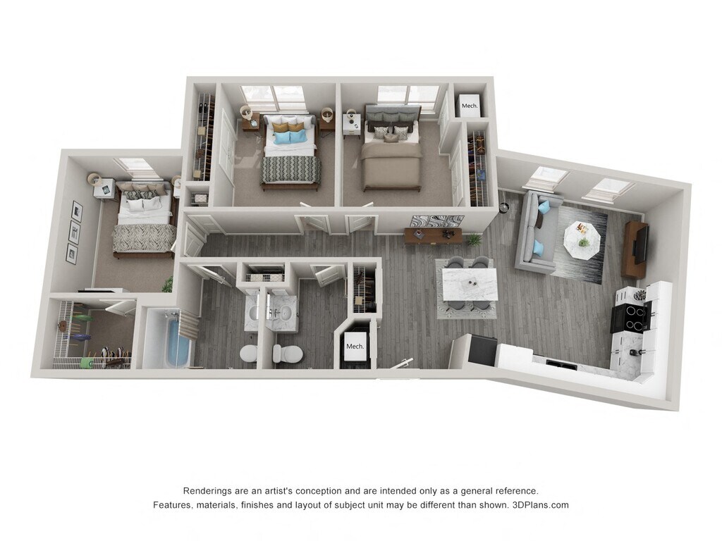 3 Dormitorios, 2 Baños, 1616 pies²El más grandeEsta opción tiene las unidades más grandes para este modeloGalería del Modelo