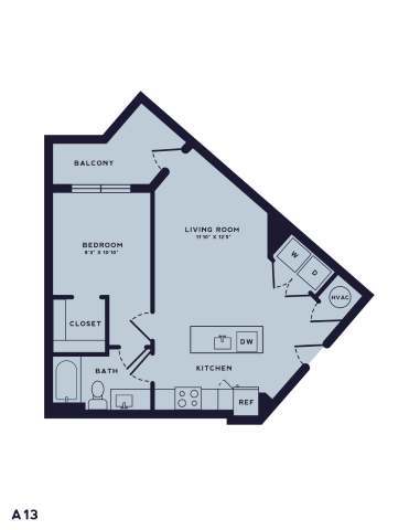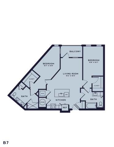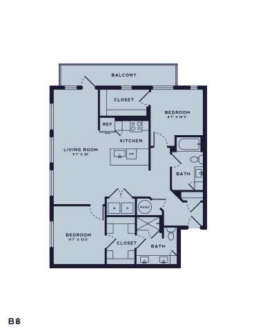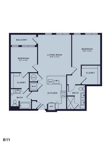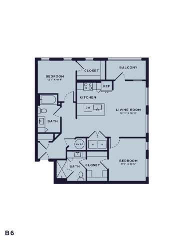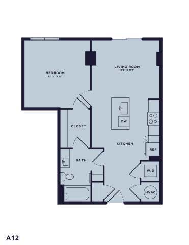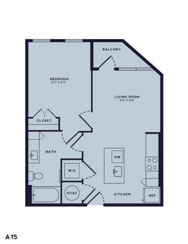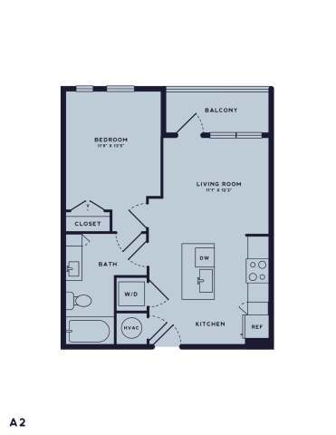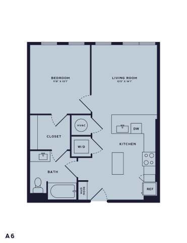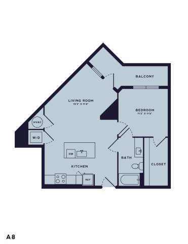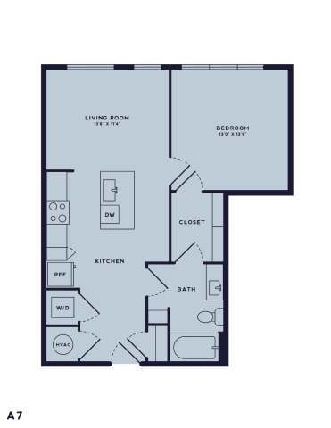 Modelo de apartamento: A7Desde $1,6441 Dormitorio, 1 Baño, 724 sq ftDisponible Ahora![]()