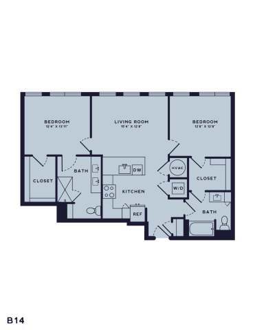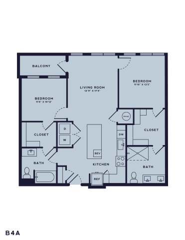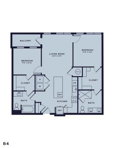 Modelo de apartamento: A4Desde $1,5941 Dormitorio, 1 Baño, 617 sq ftDisponible Ahora![]()