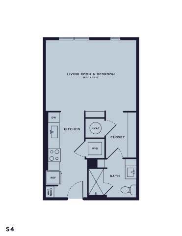 Modelo de apartamento: S8Llame para PreciosEstudio, 1 Baño, 574 sq ftNo Disponible![]()