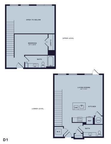 1 Dormitorio, 1 Baño, 617 pies²Disponible AhoraGalería del Modelo
