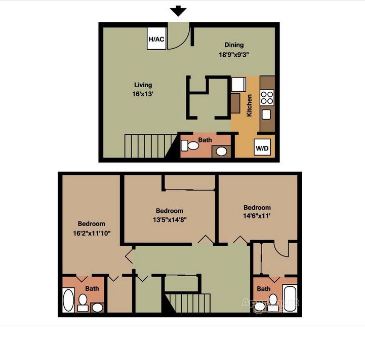 Modelo de apartamento: 3 Bedroom Townhouse$1,8753 Dormitorios, 2.5 Baños, 1450 sq ftNo Disponible![]()