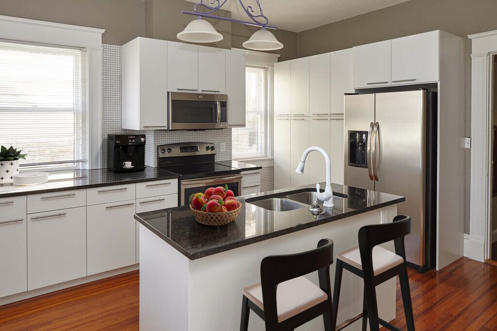 Victorian House es una casa unifamiliar para alquilar. Disfrute de un espacio lujoso con hermosos pisos de madera y una cocina completamente renovada. Dos luminosos cuartos de sol abren la casa a Hyde Park y su aireado ambiente. Una gran chimenea calienta e invita a los residentes a relajarse con un buen libro. Dos escaleras de madera se reflejan entre sí, lo que conduce al segundo piso. Victorian House ofrece habitaciones espaciosas y encantadoras, además de ser cómodas y convenientes. Victorian House forma parte de la comunidad de apartamentos Mac Properties en Midtown Kansas City. Disfrute de acceso de cortesía a nuestros servicios imprescindibles del vecindario, como animados eventos para residentes, el parque Gillham Dog Park y la sala de estar IBM. Los residentes también pueden personalizar los servicios con nuestras membresías de servicios del vecindario para desbloquear el acceso a la piscina y sala de estar Carriage House y al gimnasio completamente equipado en The Gymnasium en el Bellerive cercano.