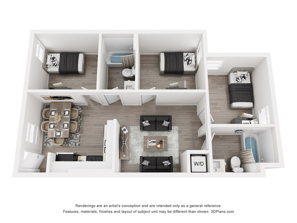 3 Dormitorios, 1.5 Baños, 836 pies²Disponible AhoraEl más grandeEsta opción tiene las unidades más grandes para este modeloGalería del Modelo