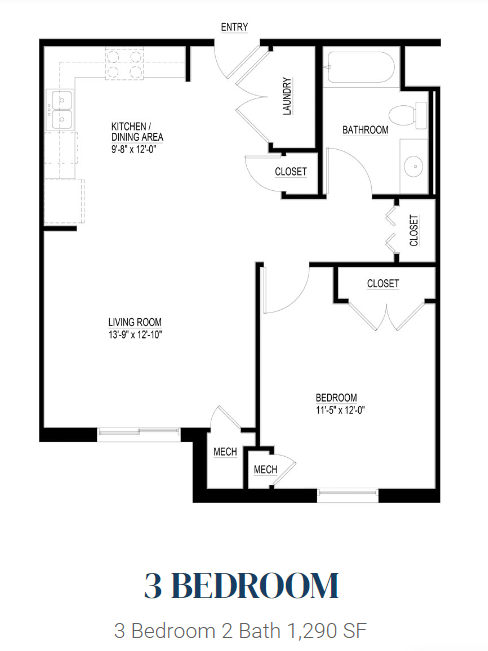 3 Dormitorios, 2 Baños, 1290 pies²Galería del Modelo