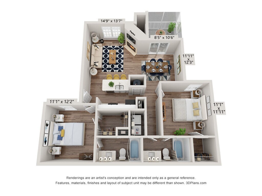 Modelo de apartamento: Cameron Luxe$1,4211 Dormitorio, 1 Baño, 596 sq ftDisponible Ahora![]()