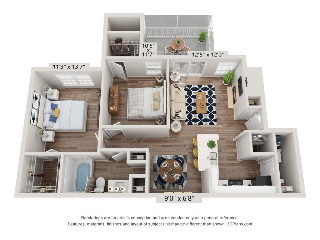 Modelo de apartamento: WilliamsonDesde $1,3581 Dormitorio, 1 Baño, 676 sq ftDisponible Ahora![]()