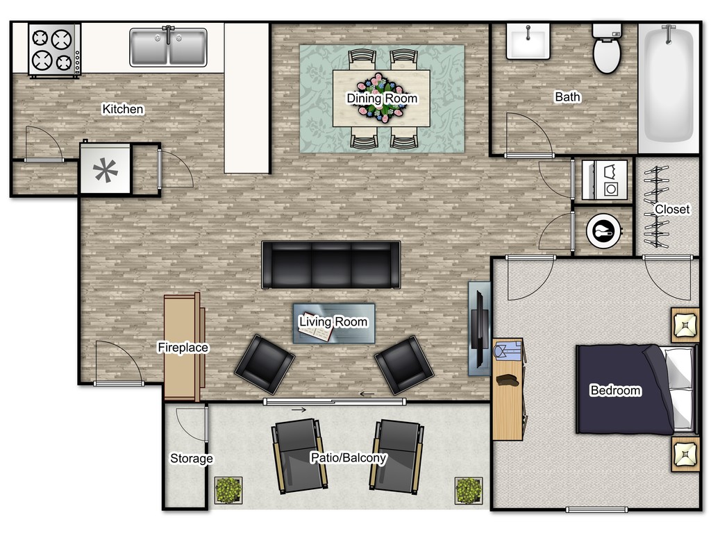 1 Dormitorio, 1 Baño, 700 pies²Disponible AhoraGalería del Modelo