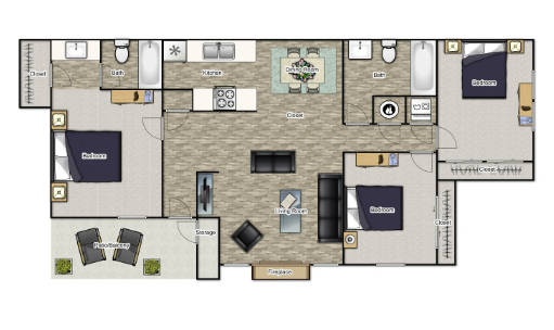 3 Dormitorios, 2 Baños, 1100 pies²Disponible Oct 22Galería del Modelo