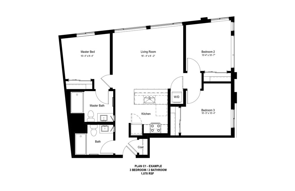 3 Dormitorios, 2 Baños, 1078 pies²Disponible AhoraGalería del Modelo