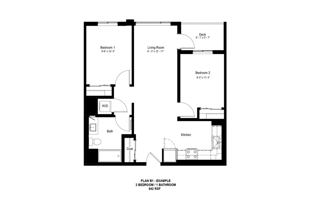 2 Dormitorios, 1 Baño, 842 pies²Disponible AhoraGalería del Modelo