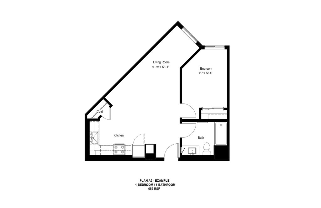 1 Dormitorio, 1 Baño, 659 pies²Disponible AhoraGalería del Modelo
