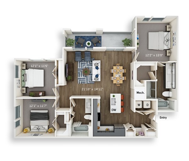 1 Dormitorio, 1 Baño, 817 pies²Disponible AhoraGalería del Modelo