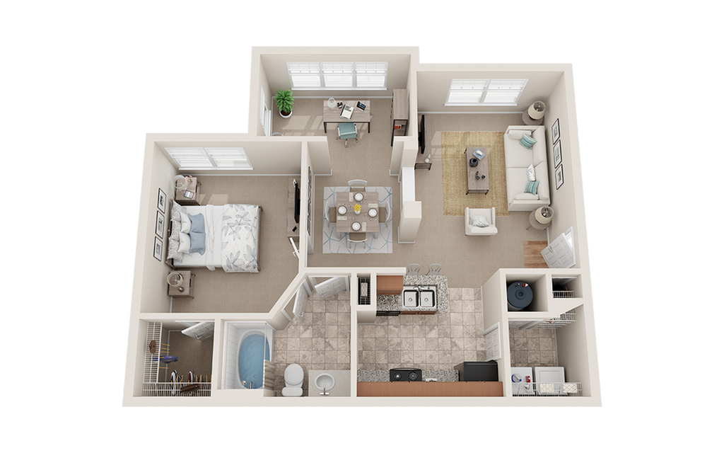 Modelo de apartamento: 1 DeluxeDesde $1,2921 Dormitorio, 1 Baño, 744 sq ftDisponible December 20, 2025![]()