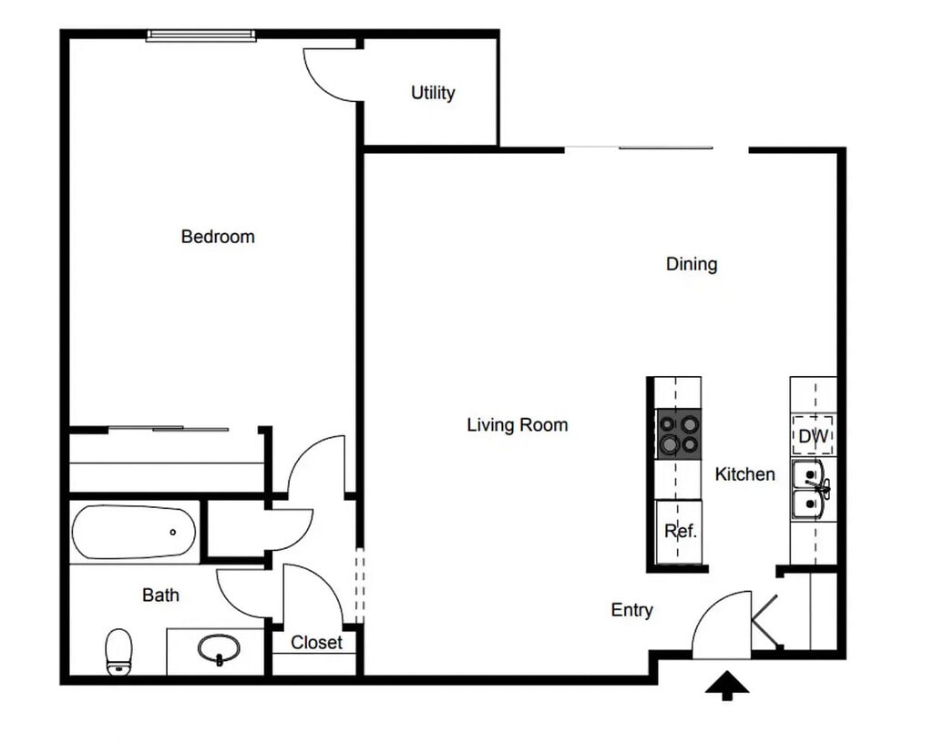 1 Dormitorio, 1 Baño, 800 pies²Disponible Dec 1Galería del Modelo
