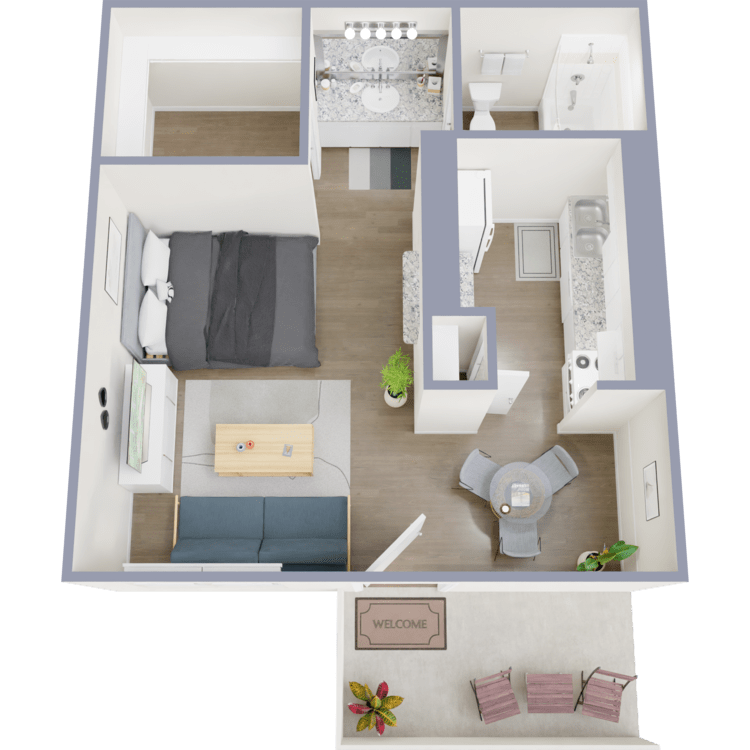 Studio B - Plano 1 Unidad de apartamento: B1-173Modelo de apartamento: Studio BEstudio, 1 Baño, 505 sq ftDisponible January 6, 20261 Dormitorio