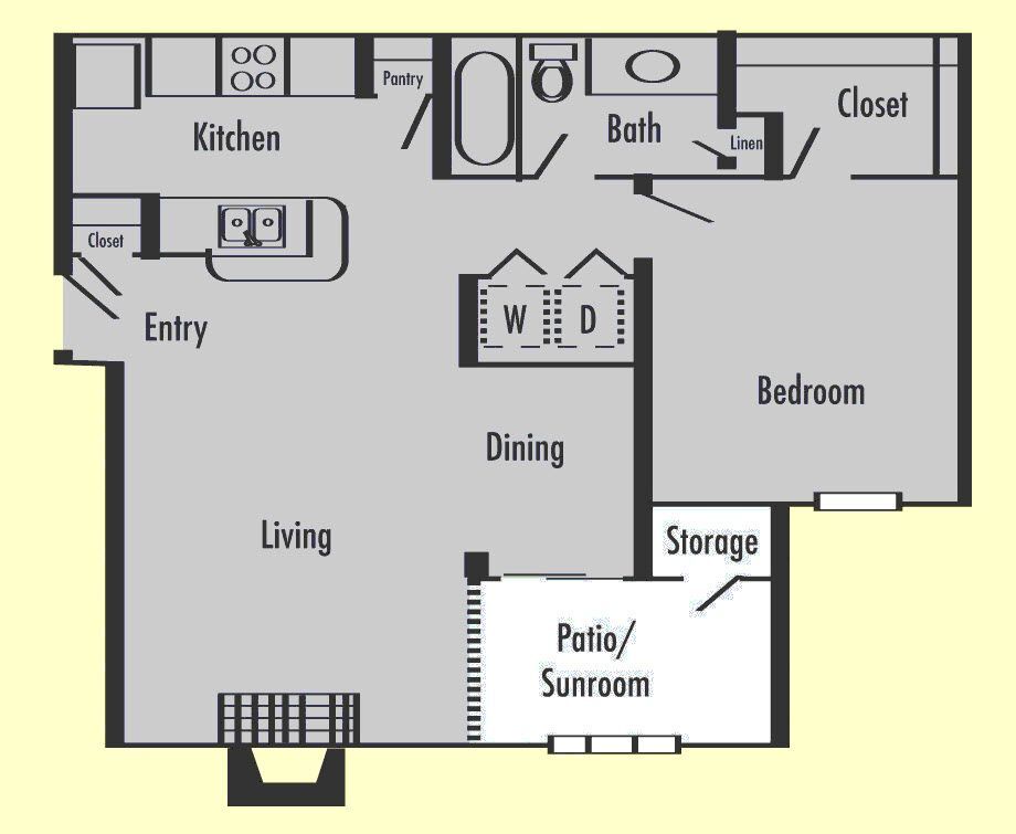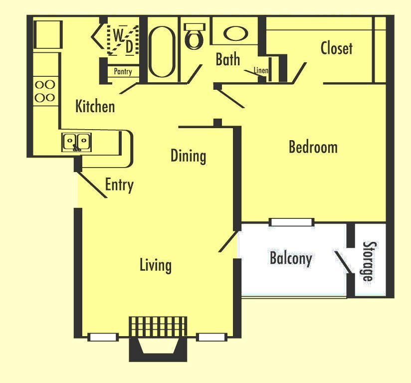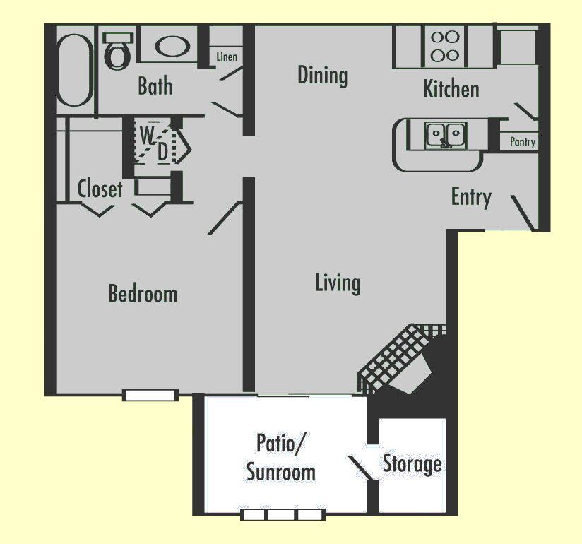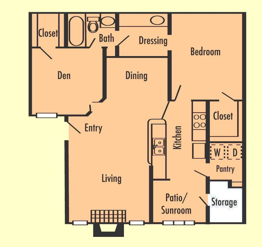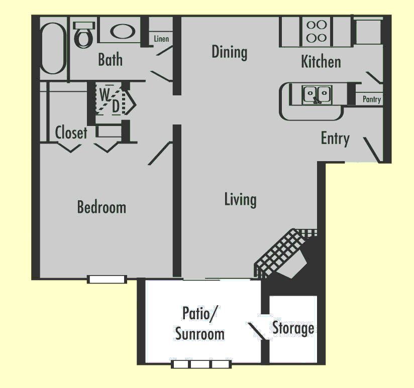 Modelo de apartamento: A3S1 Dormitorio, 1 Baño, 840 sq ftDisponible AhoraPlanosFotos![]()