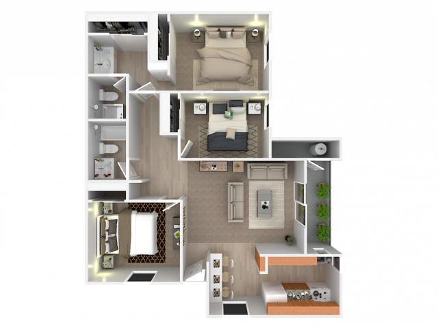 Modelo de apartamento: 1x1Desde $1,0991 Dormitorio, 1 Baño, 734 sq ftDisponible AhoraPlanosFotos![]()