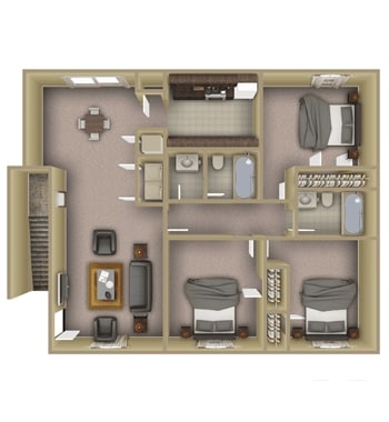 Modelo de apartamento: 4x4 Classic4 Dormitorios, 4 Baños, 1600 sq ftNo Disponible![]()