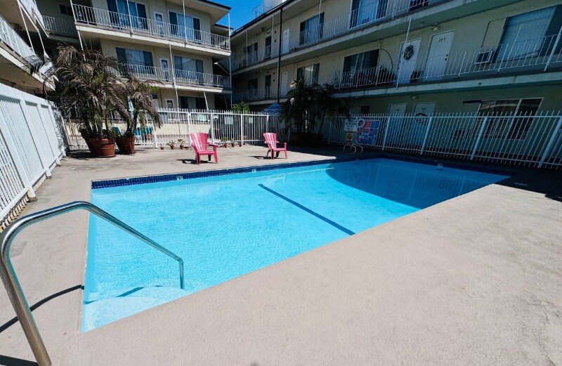 The units overlook the large swimming pool. Great location. Walk to Food 4 Less, 7-11, MacDonalds and many other restaurants. Close to Occidental College. Laundry on site. Elevator in the lobby. Very close to 110 Freeway and downtown. Enjoy many local parks that this unique area has to offer.