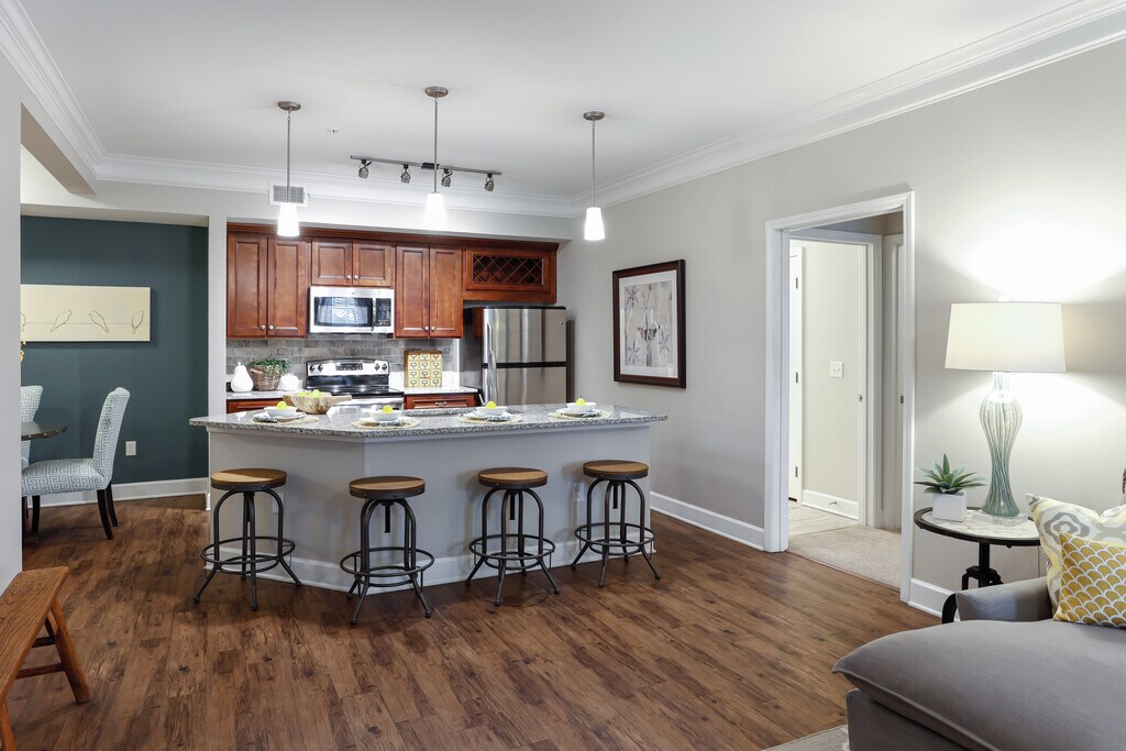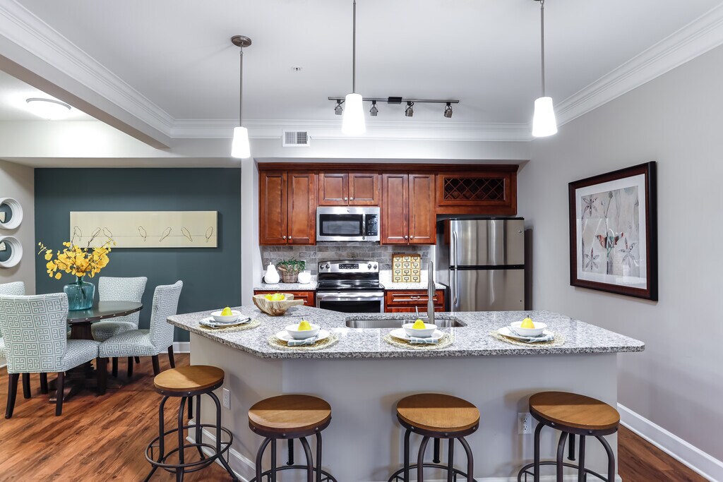 August 11, 2015When I walk outside my apartment about 11 0'clock at night, I can see the same stars I saw as a kid. Our complex feels like a neighborhood, not a bunch of apartment buildings: open spaces and landscaping like a home's yard with trees and flowers. I chat with friends walking down the street, I can see a movie with a friend in the theater at the Clubhouse, take a dip in the saltwater pool, exercise, or entertain my family in the Clubhouse kitchen. Shopping, restaurants, funplaces are all close, but ...I still get that small town feeling with a field of soybeans just across the street. Large closets and great storage, beautiful bathrooms with stunning tilework, and great staff, all bring me home!Leer MásReseña de Apartments.com