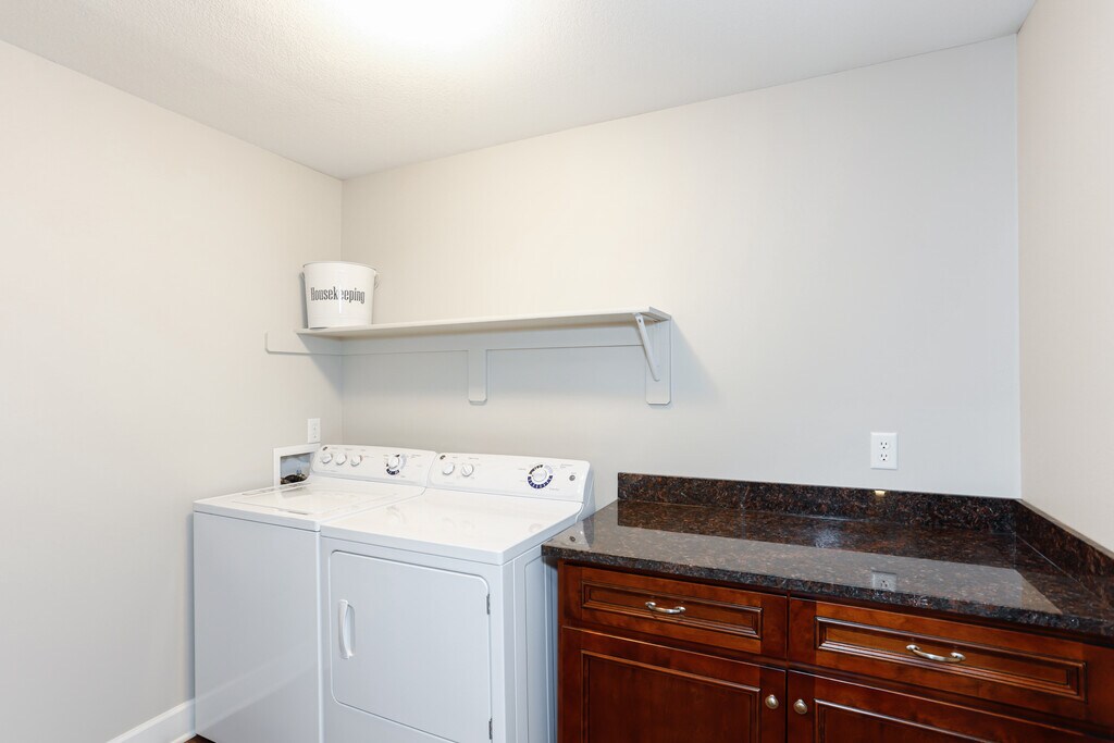 - Cuarto de lavandería equipado con lavadora y secadora de tamaño completo